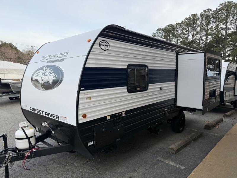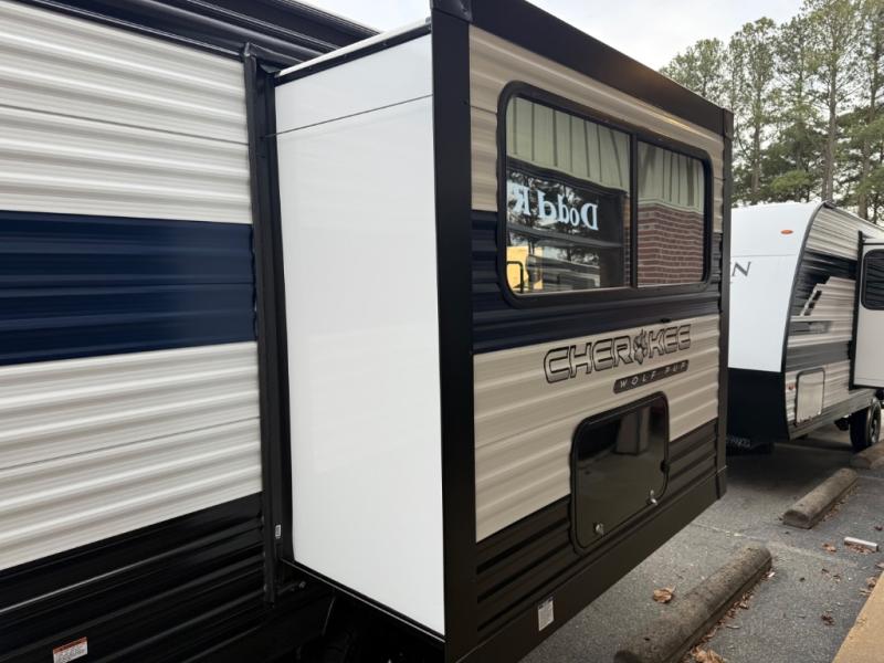 Each one of these Forest River Cherokee Wolf Pup travel trailers and toy hauler are lightweight and easy to tow! They are fully self-contained with ample tank capacities, an abundance of storage space, and filled with at home amenities. The full bath and kitchen amenities will make life at the campground easier than ever, and the outdoor patio awning will provide an inviting outdoor space!