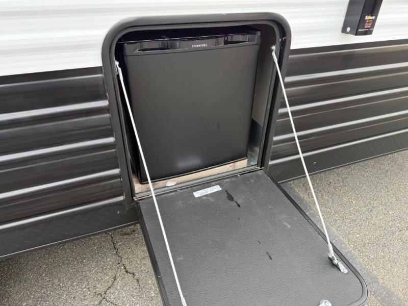 Convenient camping is found with this lightweight travel trailer! Once you arrive at your destination, put out the power awning, then make lunch on the exterior mini kitchen. Inside, you can dine at the bar top with stools, freshen up in the tub/shower, and sleep soundly on the queen bed in the master bedroom. There is also a sofa slide out to provide additional seating, sleeping, and interior space! And you're sure to find plenty of storage spaces both inside and outside, including a rear storage rack!