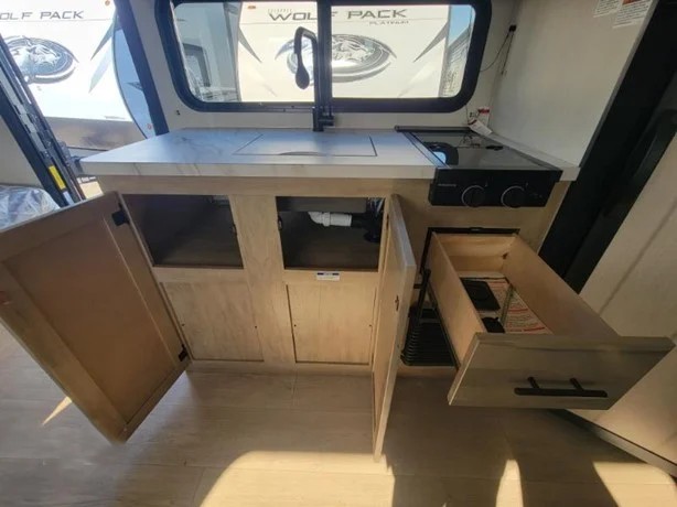 Each one of these Forest River Cherokee Wolf Pup travel trailers and toy hauler are lightweight and easy to tow! They are fully self-contained with ample tank capacities, an abundance of storage space, and filled with at home amenities. The full bath and kitchen amenities will make life at the campground easier than ever, and the outdoor patio awning will provide an inviting outdoor space.
