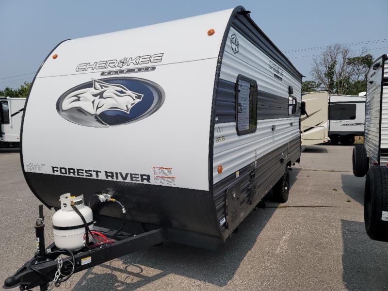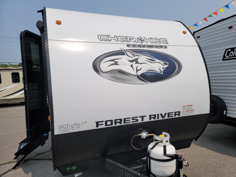 Each one of these Forest River Cherokee Wolf Pup travel trailers and toy hauler are lightweight and easy to tow! They are fully self contained with ample tank capacities, an abundance of storage space, and filled with at home amenities. The aerodynamic smooth radius front profile, the Power Gear frame technology, and the space saver rail design make them easier to maneuver. You will also appreciate the seamless roofing membrane with heat reflectivity to keep the sun from making your unit a hot box. The tongue and groove plywood flooring will hold up for years of fun and the USB charging stations help to keep your electronics at 100% while you're away. Come find the best model for you today!