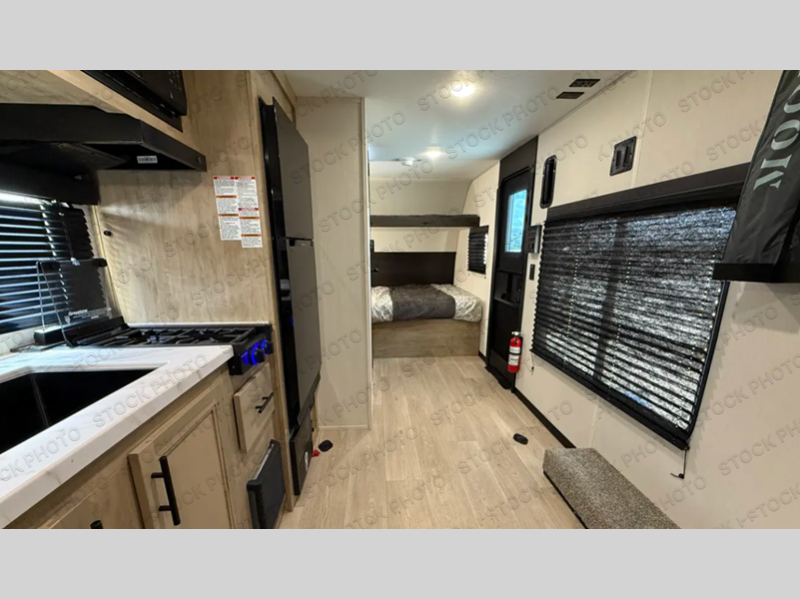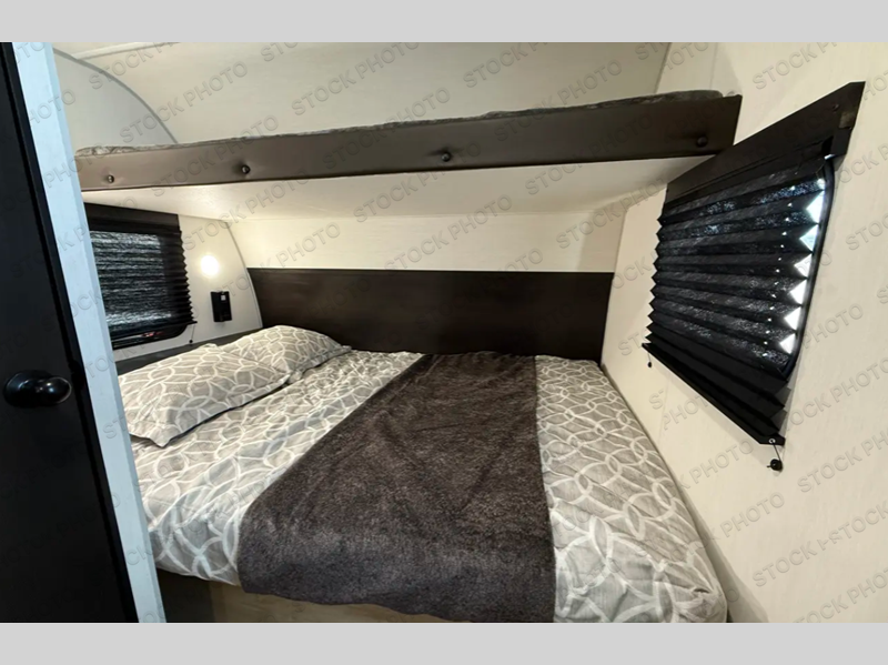 Sleeping for five and up to 13' 11" for your toys makes for an exciting adventure. The rear ramp door makes it easy to load and unload your toys, and once you are camped and the toys are removed, you can set up the dinette in back with removeable table. At night, this can double as sleeping space for two more tired campers. Up front, a queen bed with bunk above, plus storage. A tub/shower will keep everyone feeling their best, and the modern chef's kitchen will allow you to keep everyone fueled and ready for fun! There is also outside storage up front and a 12' awning for added living space outside to enjoy.