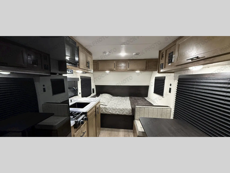 There are lots of features packed into this 19' travel trailer! The rear entry design creates a split-style bathroom for one person to use the private toilet while another freshens up in the private shower. You can prepare your best home cooked meals with the high output cooktop, the 12V high efficiency refrigerator, and a sink to make clean up easier, plus you can comfortably enjoy your meals at the booth dinette with a TV mount location. The front queen bed provides a comfortable place to lay your head at night. Store your outdoor gear in the outside storage area, rinse the mud off your feet with the outside shower, and watch the big game outdoors if you decided to add a television to the outside TV mount!