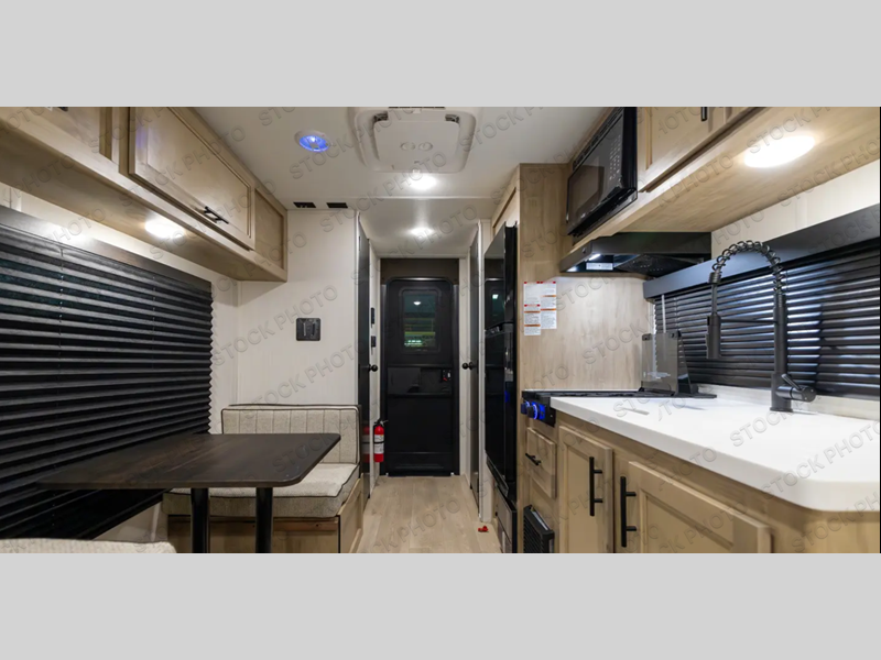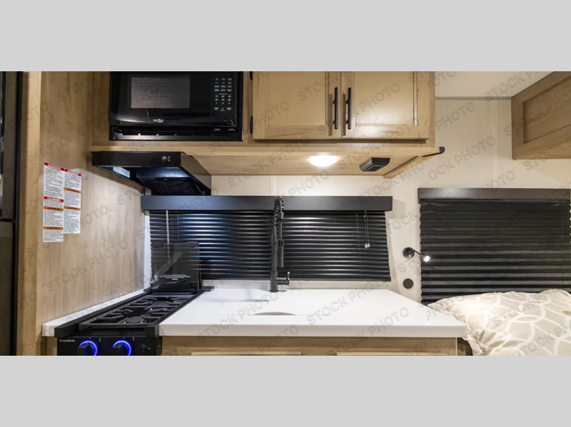 There are lots of features packed into this 19' travel trailer! The rear entry design creates a split-style bathroom for one person to use the private toilet while another freshens up in the private shower. You can prepare your best home cooked meals with the cooktop, refrigerator, and a sink to make clean up easier, plus you can comfortably enjoy your meals at the booth dinette. The front queen bed provides a comfortable place to lay your head at night. Store your outdoor gear in the outside storage area, relax under the 10' awning, and watch the big game outdoors if you decided to add a television to the outside TV mount!
