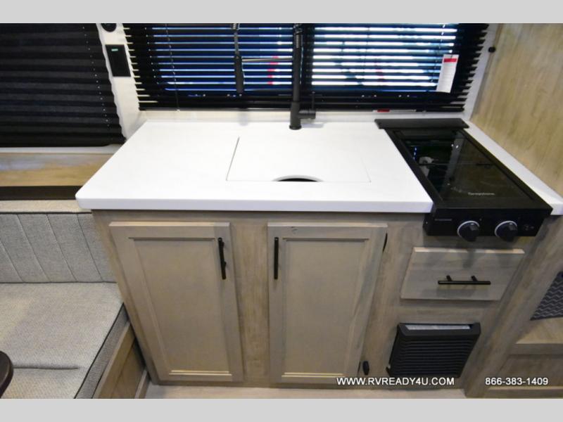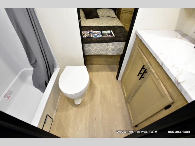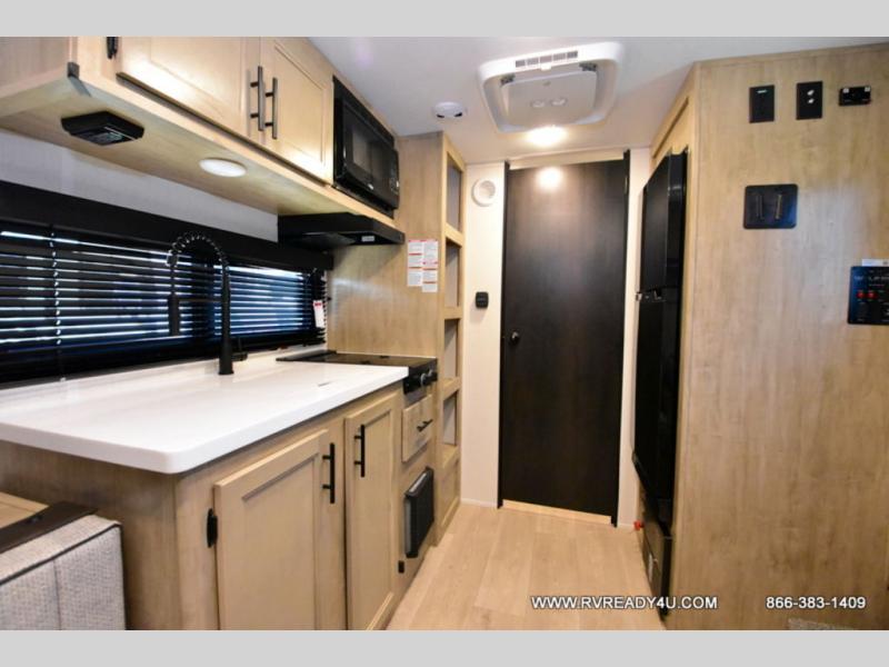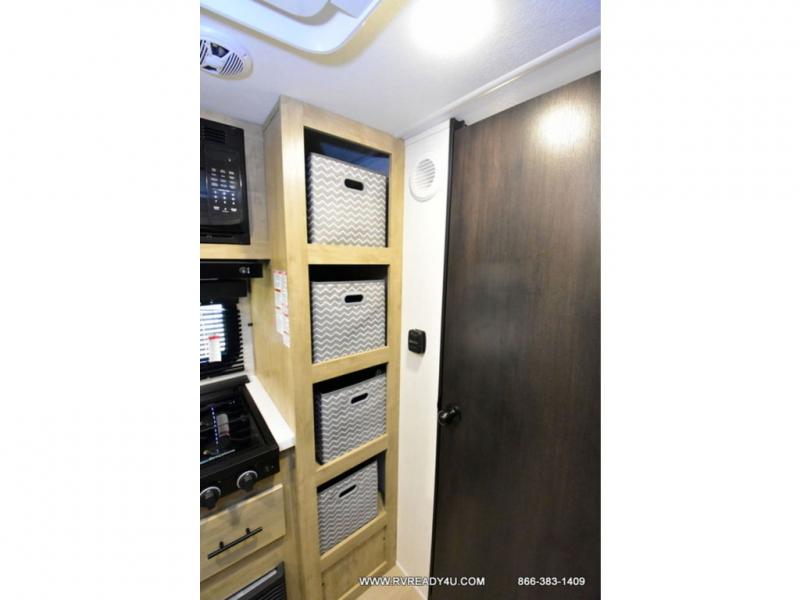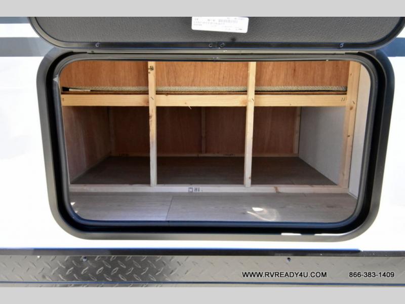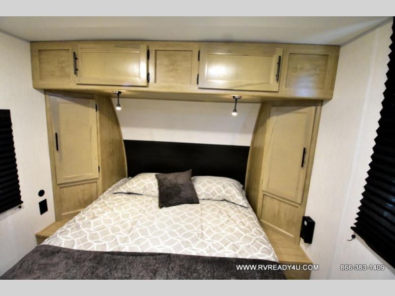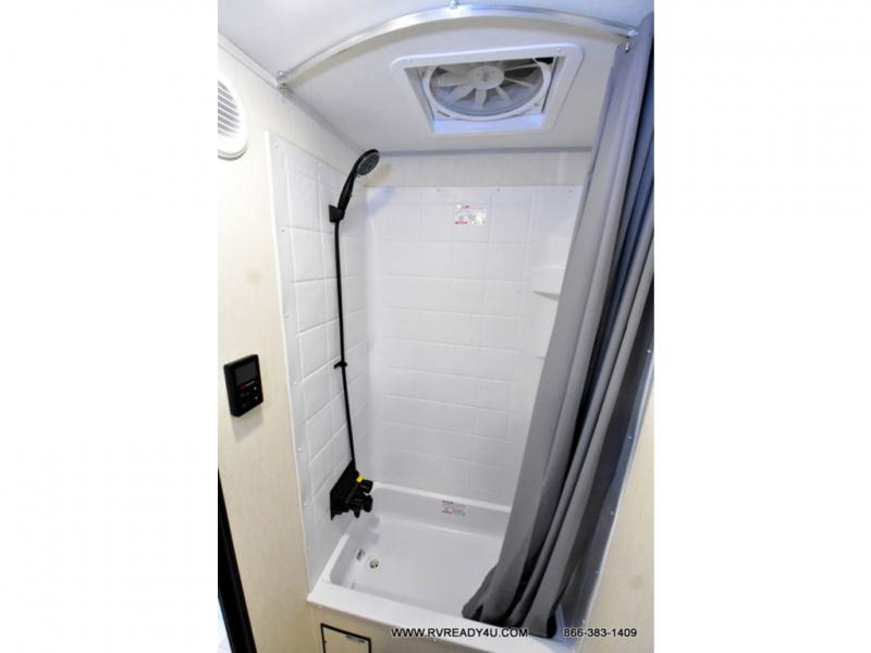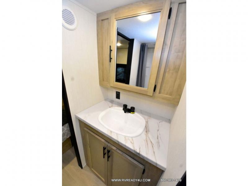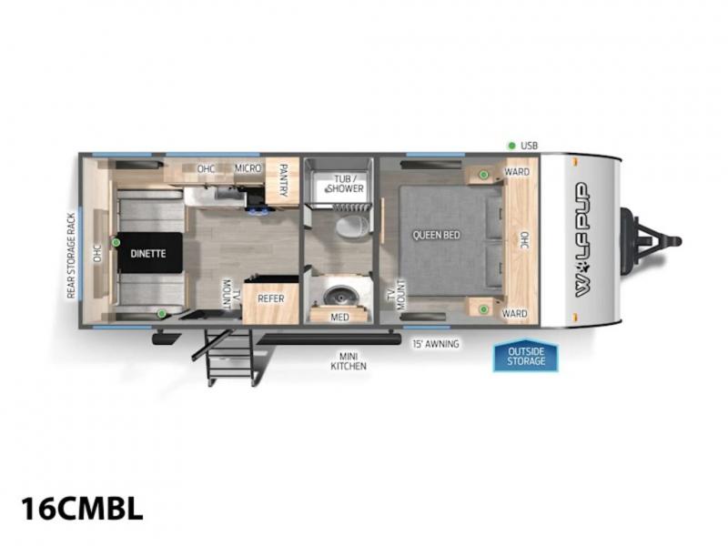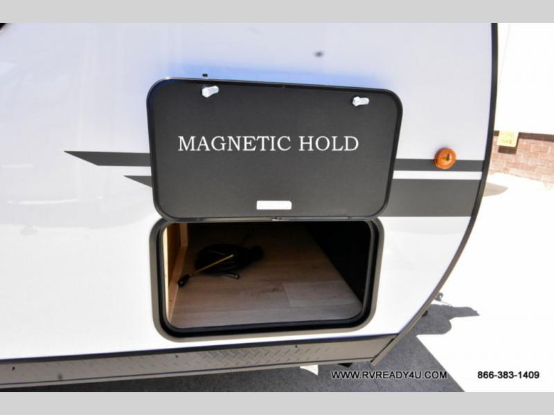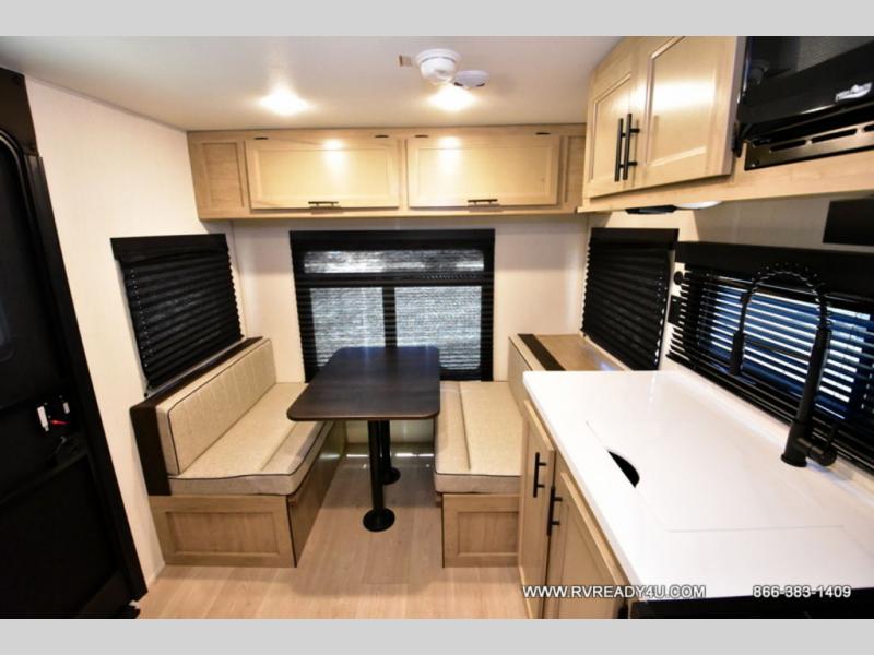 Convenient camping is found with this lightweight travel trailer! Once you arrive at your destination, put out the 15' power awning, then make lunch on the exterior mini kitchen. Inside, you can dine at the booth dinette, freshen up in the tub/shower, and sleep soundly on the queen bed in the master bedroom. And you're sure to find plenty of storage spaces both inside and outside, including a rear storage rack!