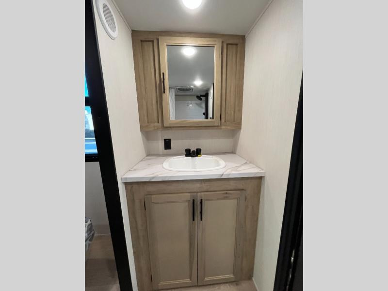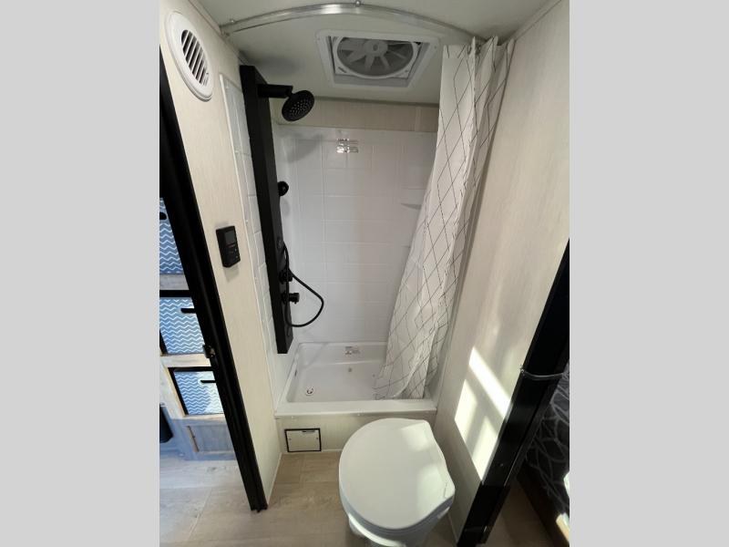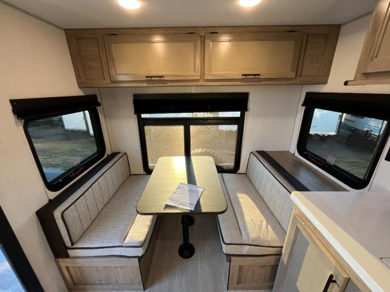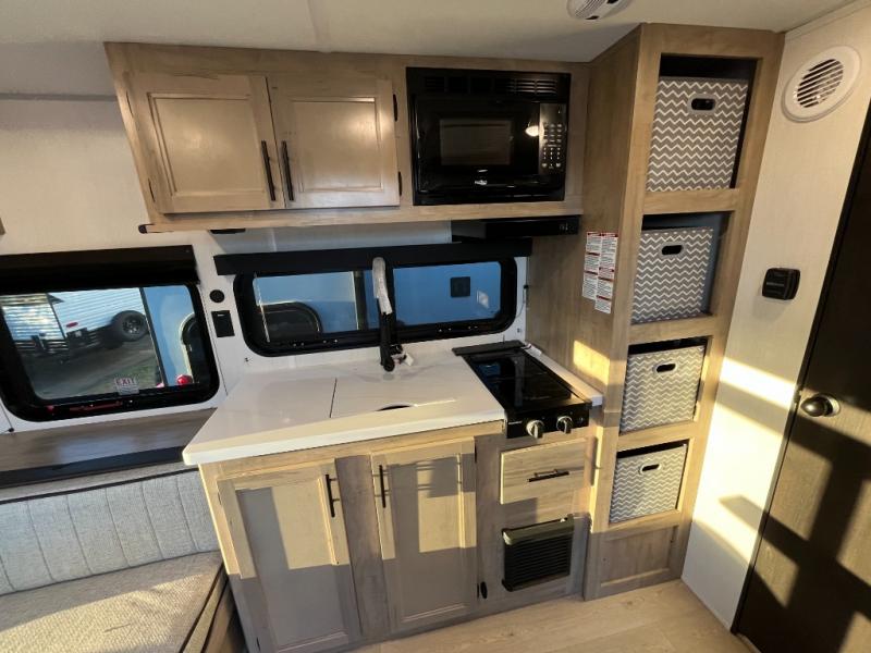 Convenient camping is found with this lightweight travel trailer! Once you arrive at your destination, put out the 15' awning, then make lunch on the exterior mini kitchen. Inside, you can dine at the booth dinette, freshen up in the tub/shower, and sleep soundly on the queen bed in the master bedroom. And you're sure to find plenty of storage spaces both inside and outside!