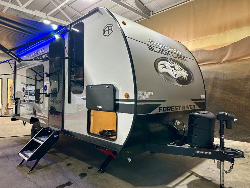 Each one of these Forest River Cherokee Wolf Pup Black Label travel trailers are lightweight and easy to tow! They are fully self contained with ample tank capacities, an abundance of storage space, and filled with at home amenities. The aerodynamic smooth radius front profile, the Power Gear frame technology, and the space saver rail design make them easier to maneuver. You will also appreciate the seamless roofing membrane with heat reflectivity to keep the sun from making your unit a hot box. The tongue and groove plywood flooring will hold up for years of fun and the USB charging stations help to keep your electronics at 100% while you're away. The Black Label Package includes a frameless window package, hung fiberglass gel coat sided walls, thermo-foil arctic insulation, and more!