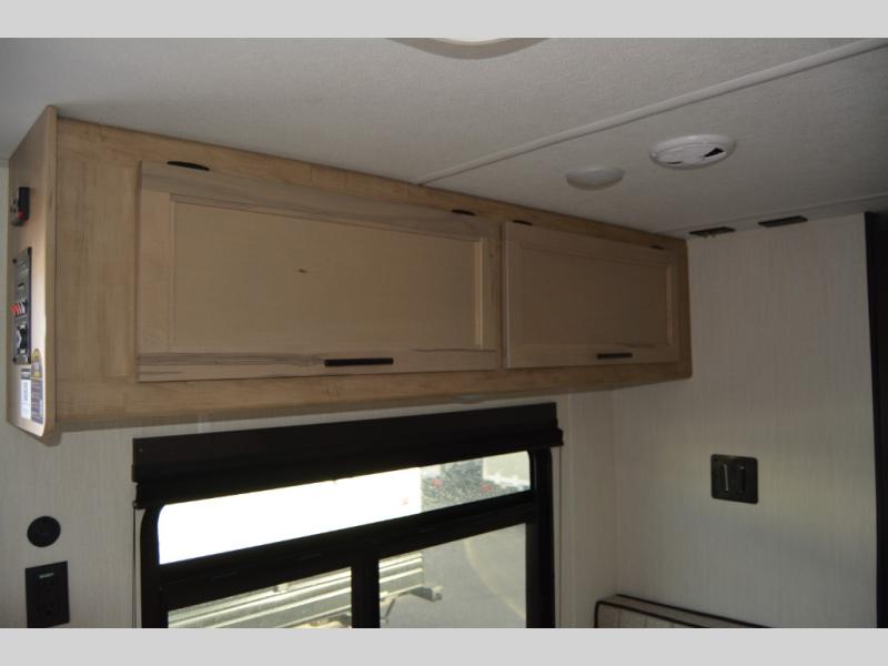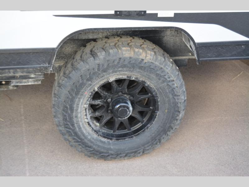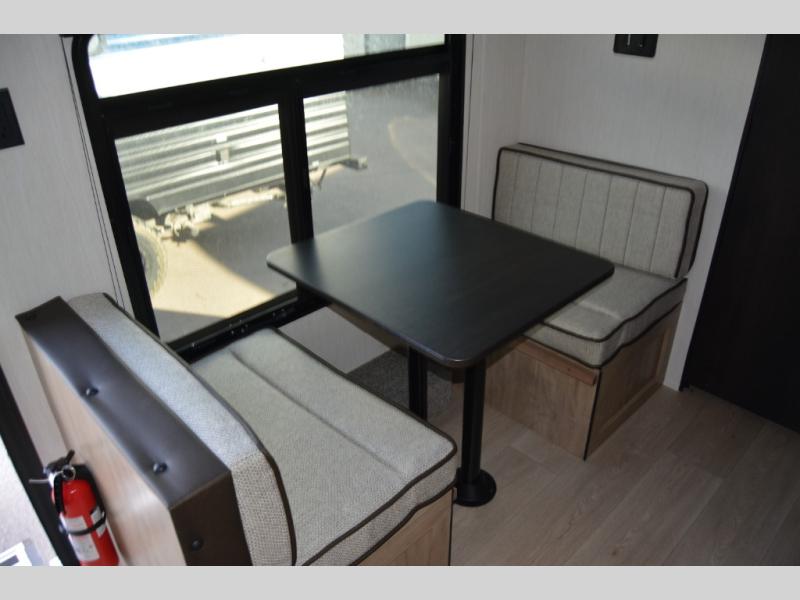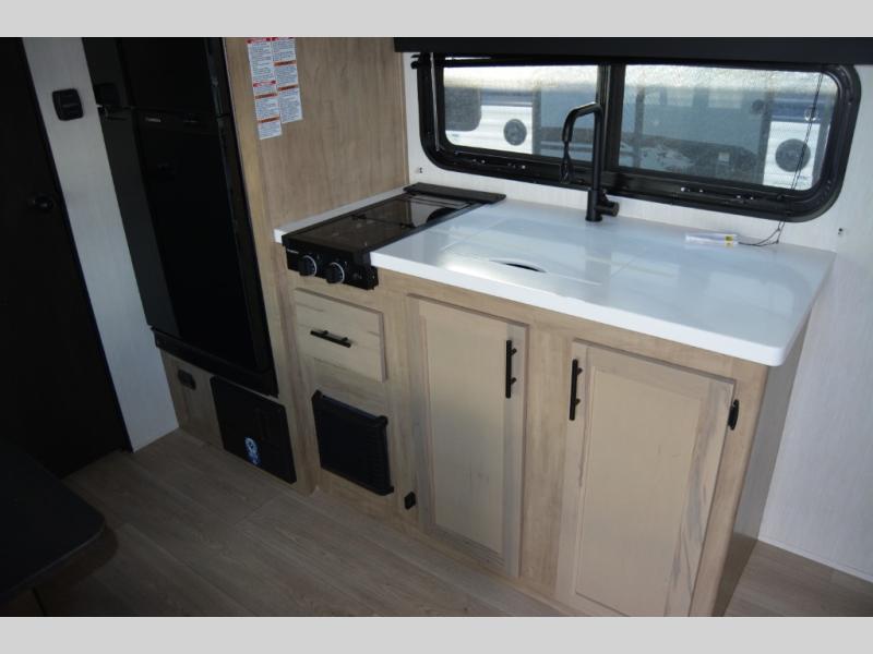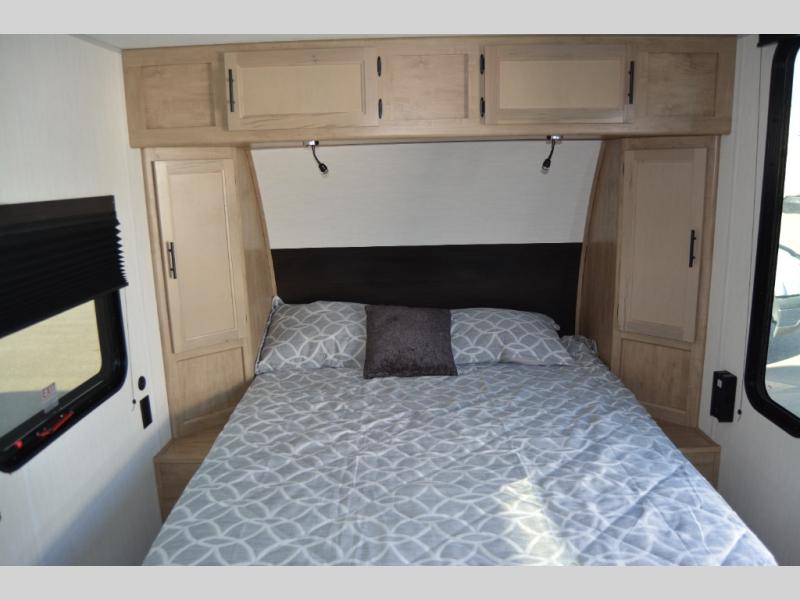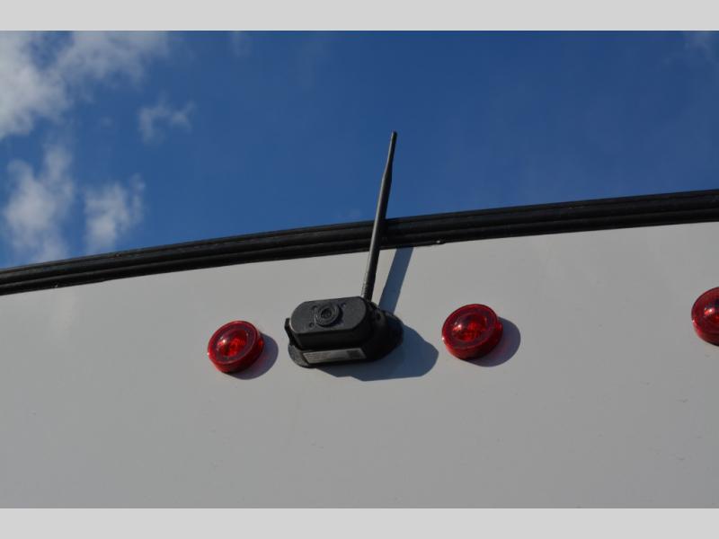 You will love camping in this travel trailer with your own queen bed up front! Freshen up each morning in the full rear bathroom with the tub/shower, toilet, and sink. Fill your bellies with the perishables stored in the 12V high efficiency refrigerator and cook them on the high output cooktop. You could even prepare a meal while breathing in some fresh air at the outside mini kitchen while staying protected by the 12' power awning. Easily store all of your outdoor gear in the outside storage area too!