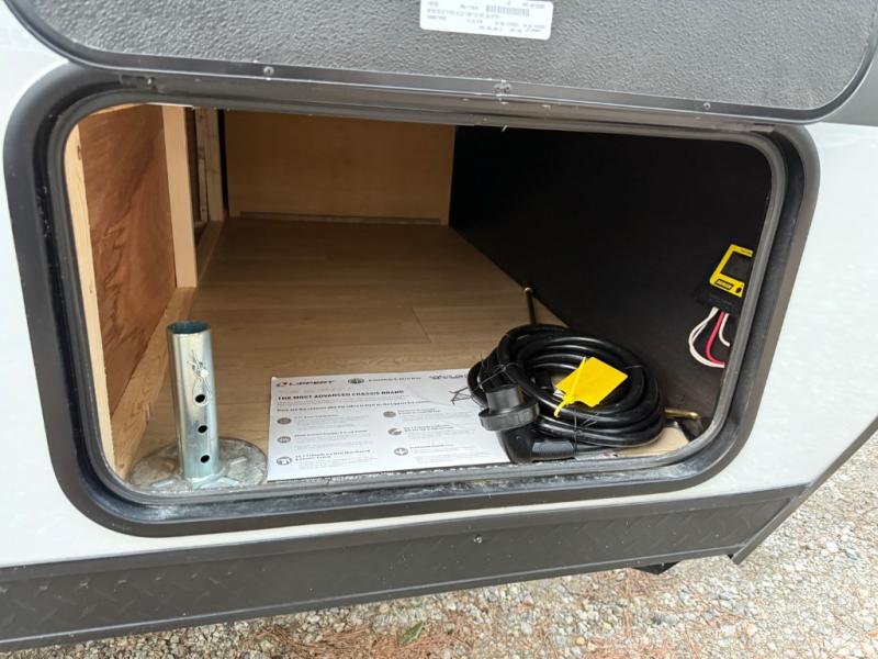 You will love camping in this travel trailer with your own queen bed up front! Freshen up each morning in the full rear bathroom with the tub/shower, toilet, and sink. Fill your bellies with the perishables stored in the 12V high efficiency refrigerator and cook them on the high output cooktop. You could even prepare a meal while breathing in some fresh air at the outside mini kitchen while staying protected by the 12' power awning. Easily store all of your outdoor gear in the outside storage area too!