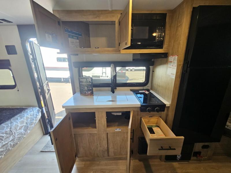 Each one of these Forest River Cherokee Wolf Pup Black Label travel trailers are lightweight and easy to tow! They are fully self contained with ample tank capacities, an abundance of storage space, and filled with at home amenities. The aerodynamic smooth radius front profile, the Power Gear frame technology, and the space saver rail design make them easier to maneuver. You will also appreciate the seamless roofing membrane with heat reflectivity to keep the sun from making your unit a hot box. The tongue and groove plywood flooring will hold up for years of fun and the USB charging stations help to keep your electronics at 100% while you're away. The Black Label Package includes a frameless window package, hung fiberglass gel coat sided walls, thermo-foil arctic insulation, and more!