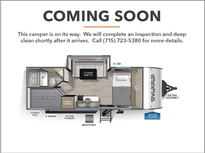 This family travel trailer is ready to head to the campground whenever you are! The kiddos can sleep on the set of double-size bed bunks, and you can sleep on the front queen bed, plus the U-shaped dinette slide can also transform into an extra sleeping space when you aren't using it to enjoy a meal. You can prepare your delicious meals on the range or at the outside mini kitchen and stay protected by the awning. The exterior not only has outside storage and an outside TV mount but also features an outside storage plus door for access to the storage space underneath the bottom bunk bed. The rear corner bath allows everyone to stay clean and refreshed while you camp.