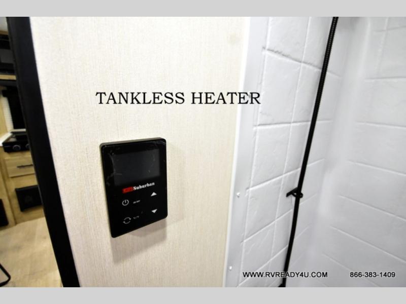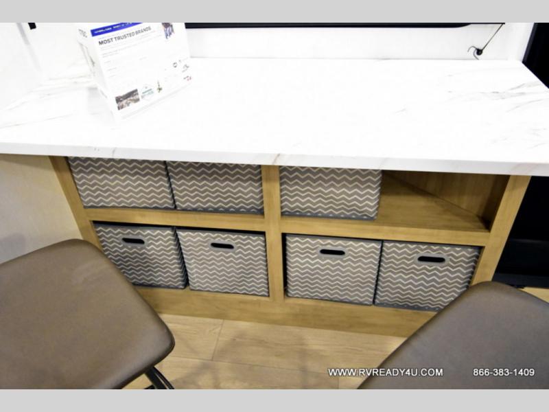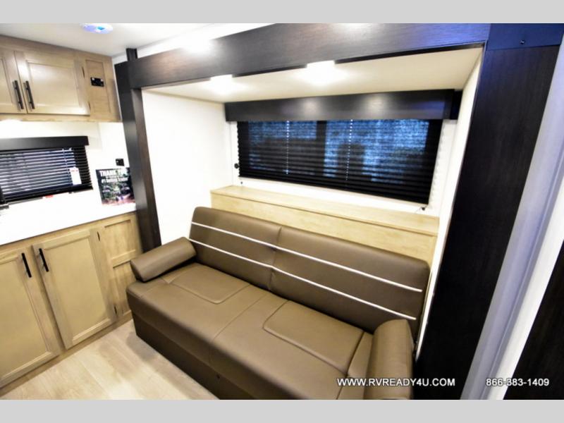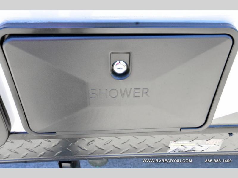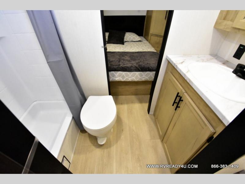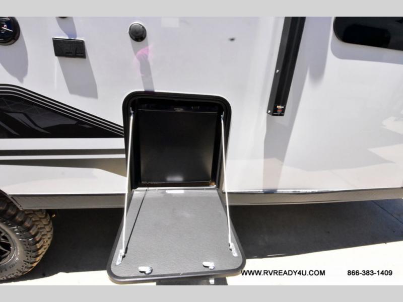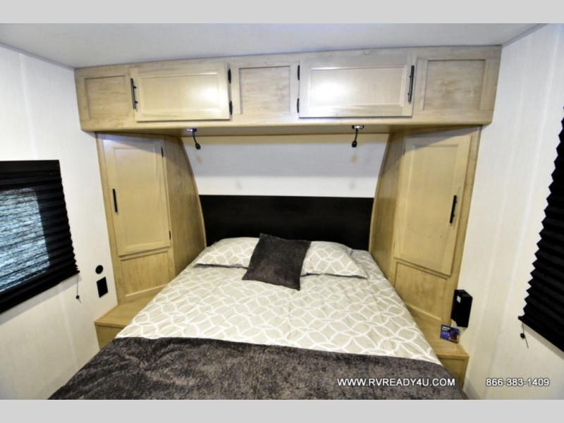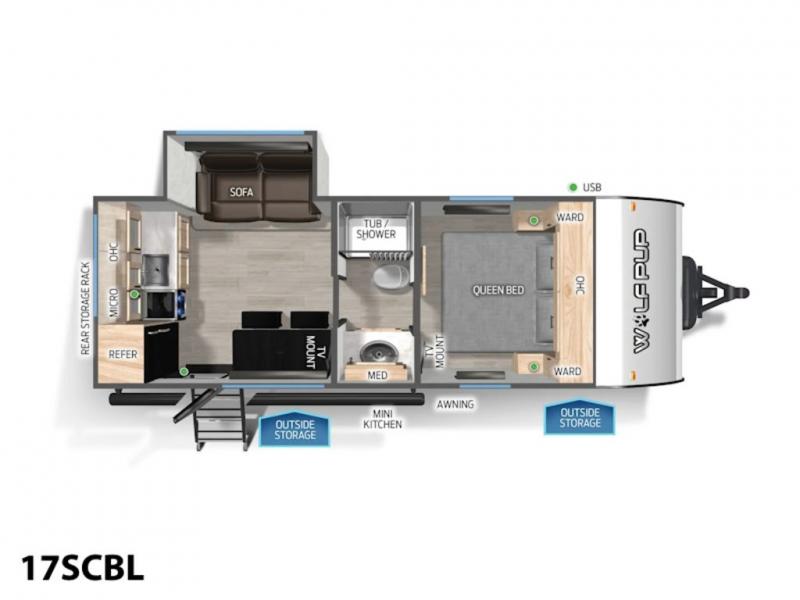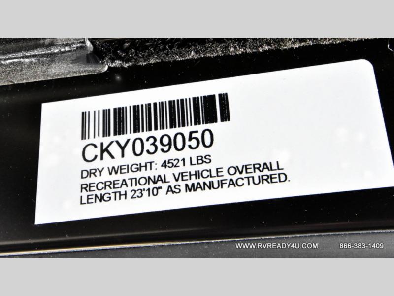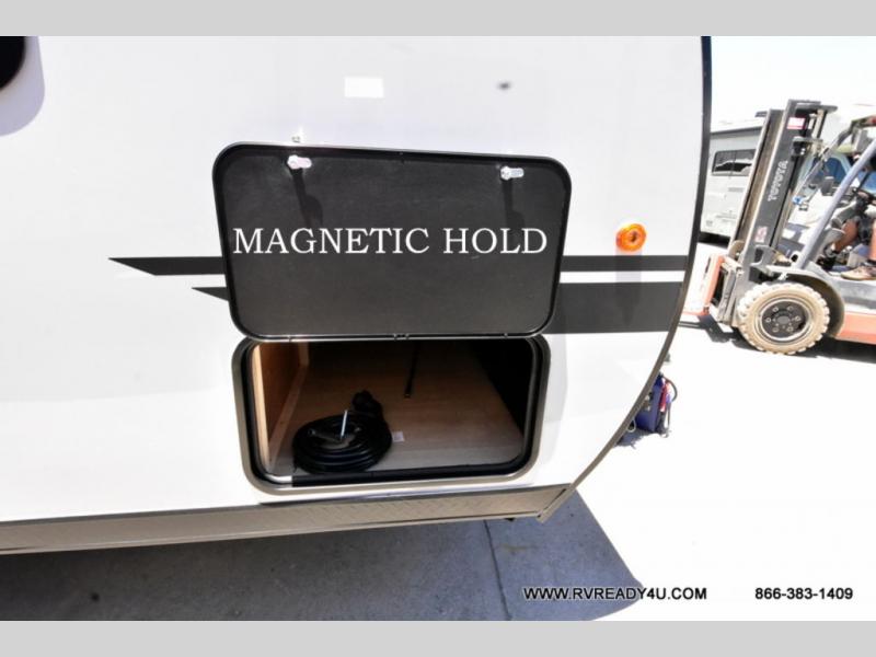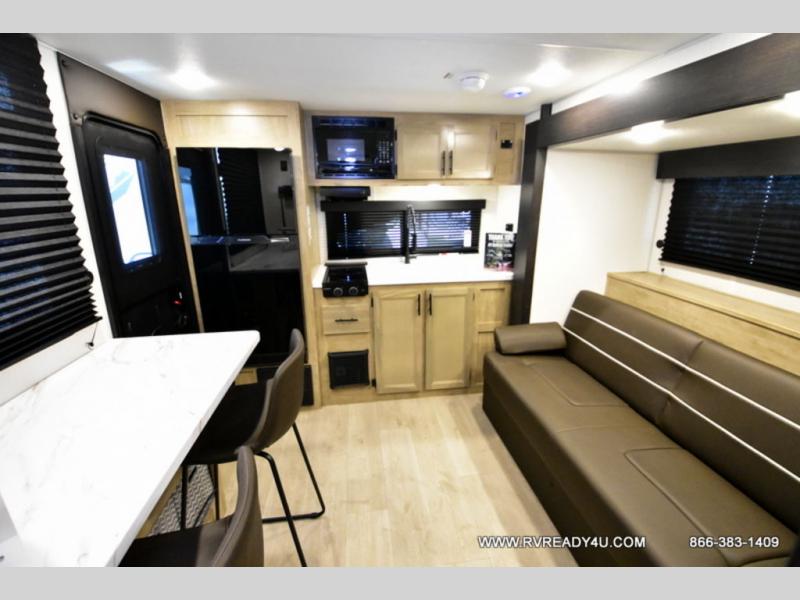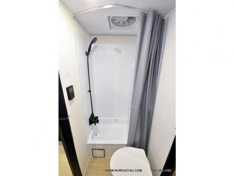 Convenient camping is found with this lightweight travel trailer! Once you arrive at your destination, put out the power awning, then make lunch on the exterior mini kitchen. Inside, you can dine at the bar top with stools, freshen up in the tub/shower, and sleep soundly on the queen bed in the master bedroom. There is also a sofa slide out to provide additional seating, sleeping, and interior space! And you're sure to find plenty of storage spaces both inside and outside, including a rear storage rack!