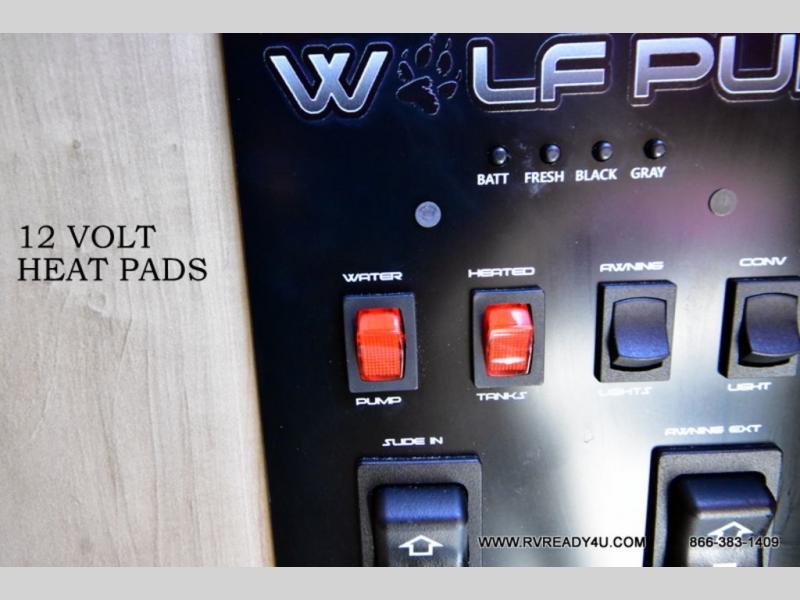 Each one of these Forest River Cherokee Wolf Pup Black Label travel trailers are lightweight and easy to tow! They are fully self contained with ample tank capacities, an abundance of storage space, and filled with at home amenities. The aerodynamic smooth radius front profile, the Power Gear frame technology, and the space saver rail design make them easier to maneuver. You will also appreciate the seamless roofing membrane with heat reflectivity to keep the sun from making your unit a hot box. The tongue and groove plywood flooring will hold up for years of fun and the USB charging stations help to keep your electronics at 100% while you're away. The Black Label Package includes a frameless window package, hung fiberglass gel coat sided walls, thermo-foil arctic insulation, and more!