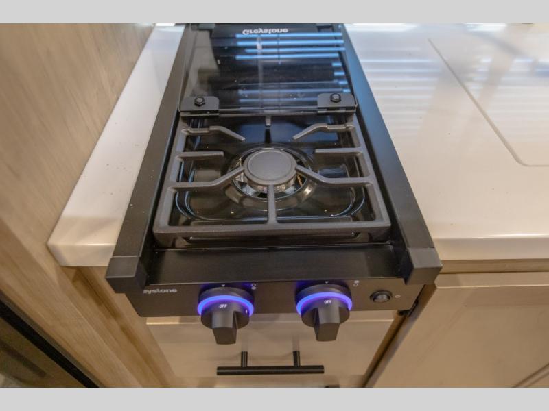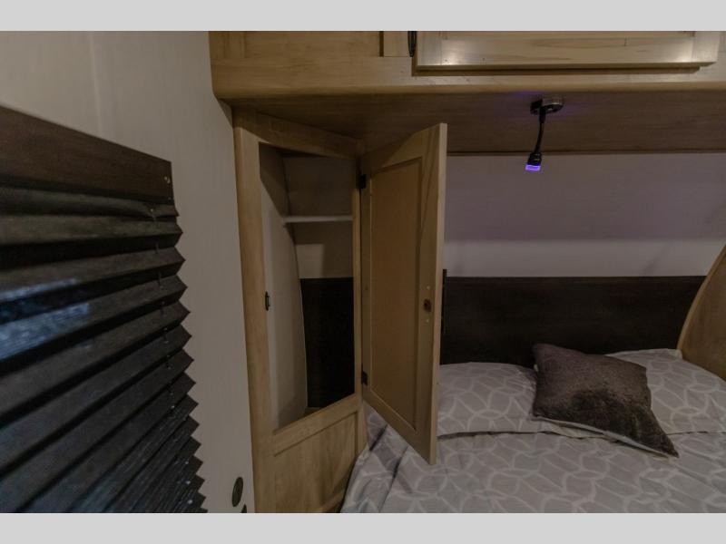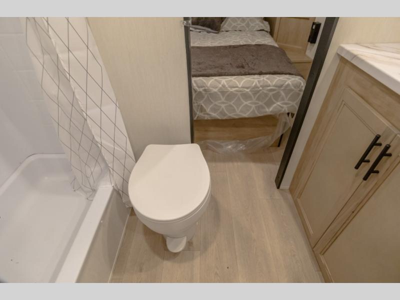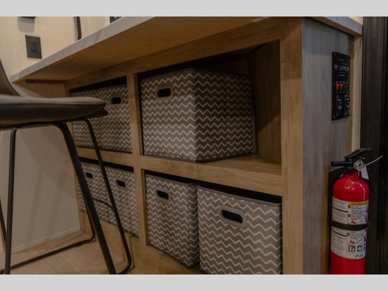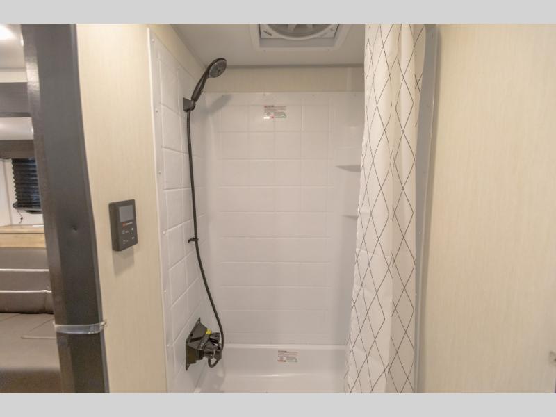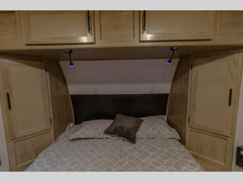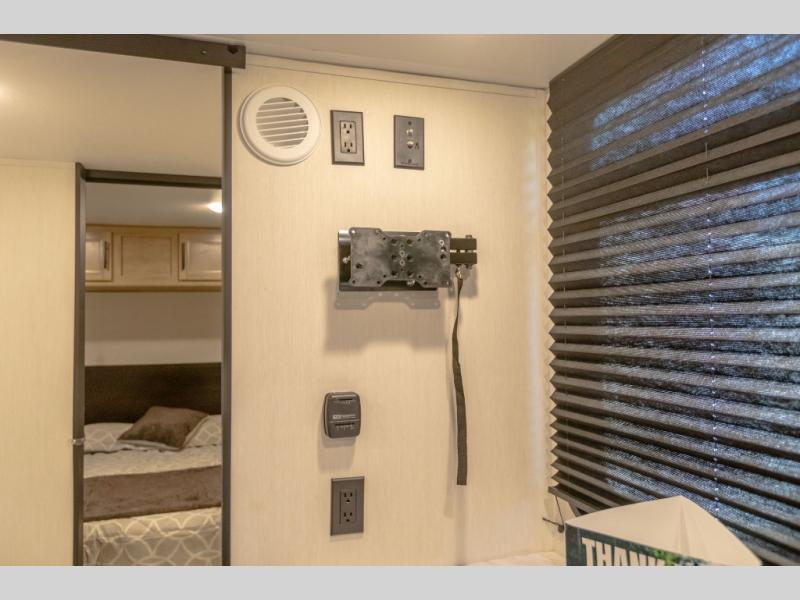 Convenient camping is found with this lightweight travel trailer! Once you arrive at your destination, put out the power awning, then make lunch on the exterior mini kitchen. Inside, you can dine at the bar top with stools, freshen up in the tub/shower, and sleep soundly on the queen bed in the master bedroom. There is also a sofa slide out to provide additional seating, sleeping, and interior space! And you're sure to find plenty of storage spaces both inside and outside, including a rear storage rack!