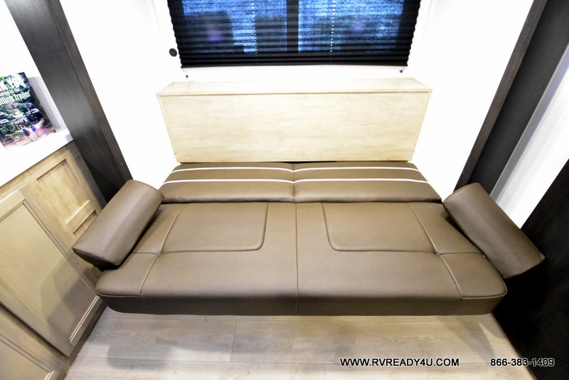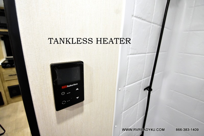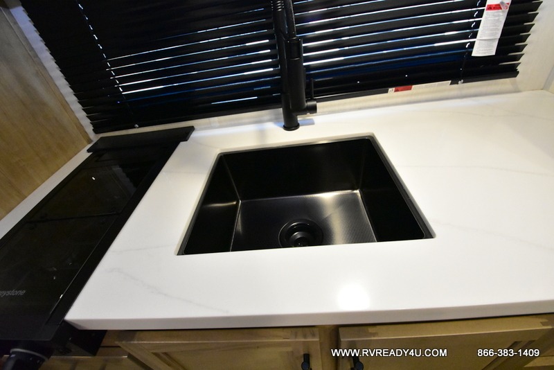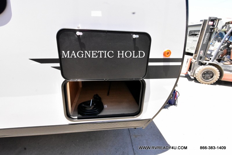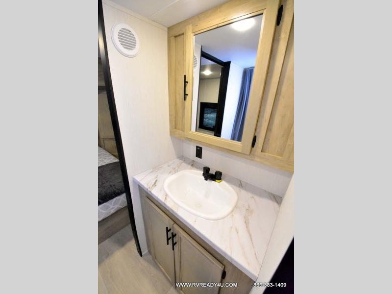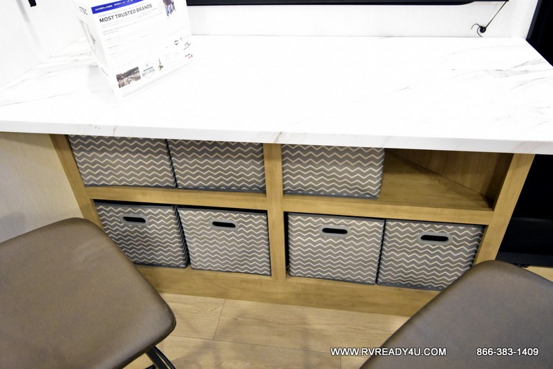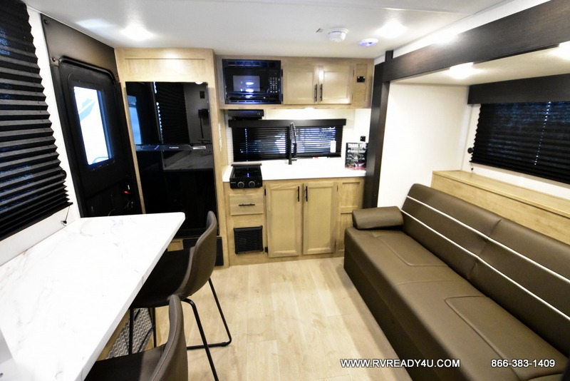 Convenient camping is found with this lightweight travel trailer! Once you arrive at your destination, put out the power awning, then make lunch on the exterior mini kitchen. Inside, you can dine at the bar top with stools, freshen up in the tub/shower, and sleep soundly on the queen bed in the master bedroom. There is also a sofa slide out to provide additional seating, sleeping, and interior space! And you're sure to find plenty of storage spaces both inside and outside, including a rear storage rack!