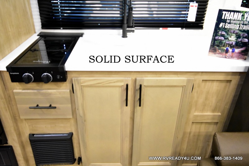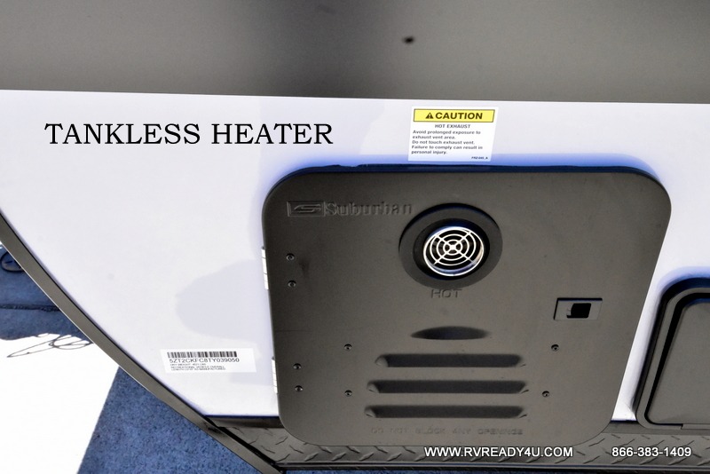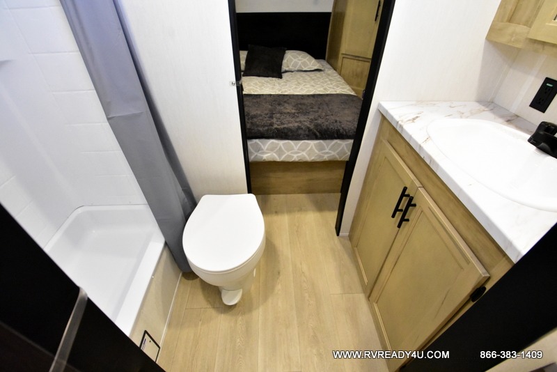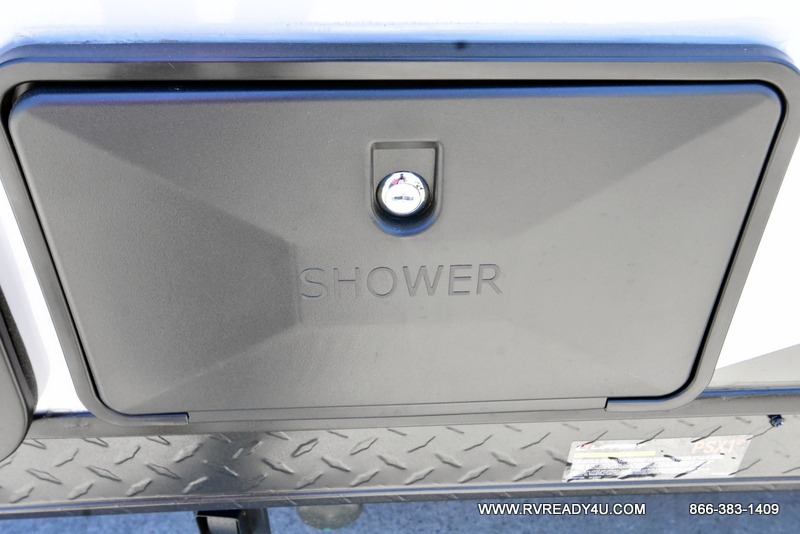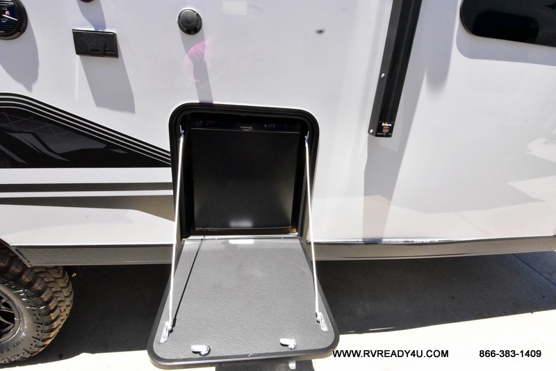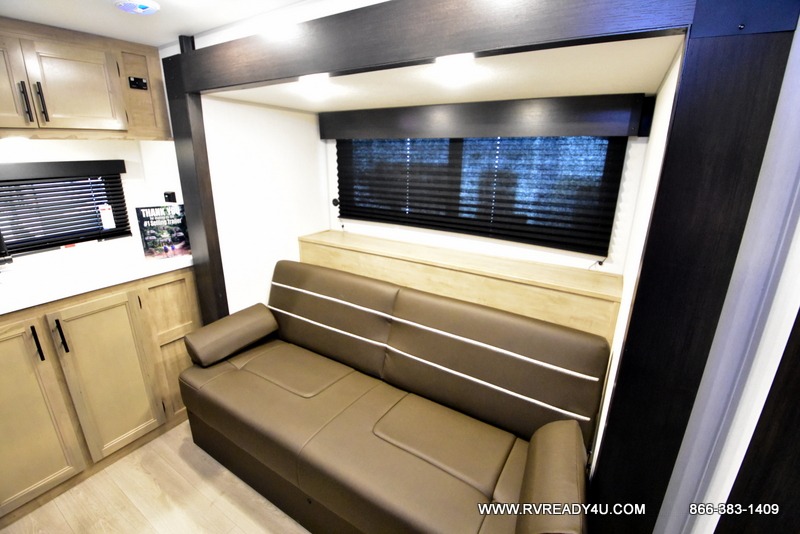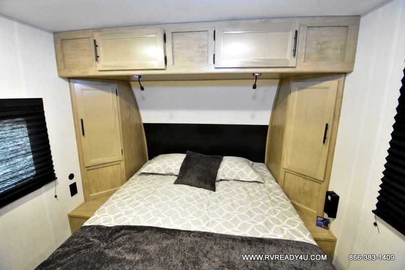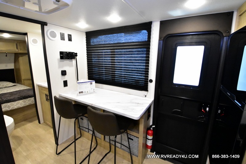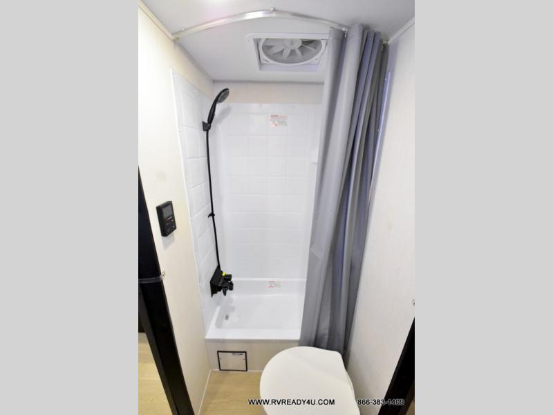 Convenient camping is found with this lightweight travel trailer! Once you arrive at your destination, put out the power awning, then make lunch on the exterior mini kitchen. Inside, you can dine at the bar top with stools, freshen up in the tub/shower, and sleep soundly on the queen bed in the master bedroom. There is also a sofa slide out to provide additional seating, sleeping, and interior space! And you're sure to find plenty of storage spaces both inside and outside, including a rear storage rack!