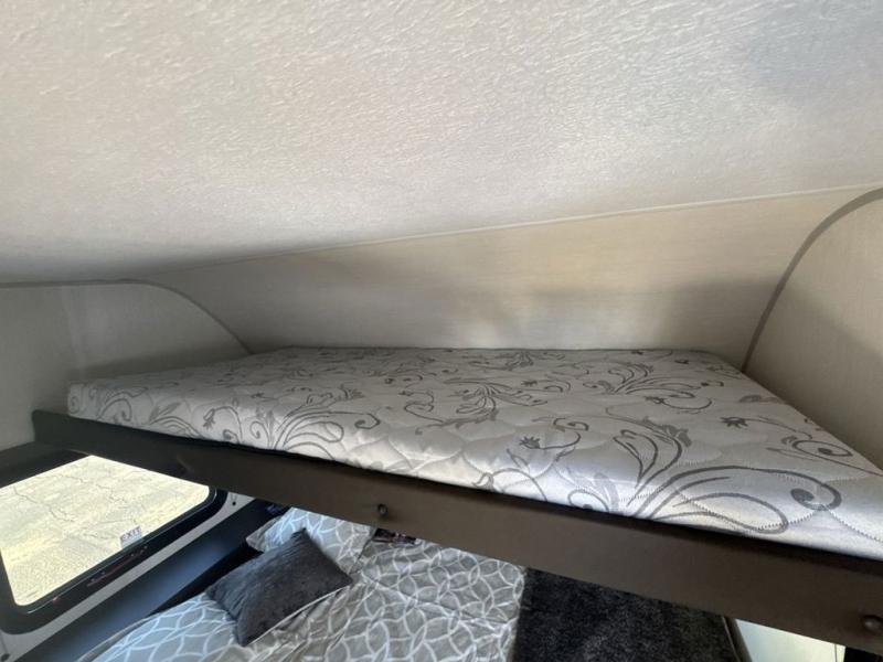 Load up your favorite off-road toys with the ramp door into the 9' 4" garage with 13' 11" total cargo space when you utilize the space up front! Enjoy all of the at home features like a fully equipped kitchen with a cooktop, refrigerator, and a microwave. Comfortably eat your delicious meals at the rear dinette with a removable table for convenience. The private bathroom has a tub/shower for you to freshen up in the morning after getting a good night's rest on the front queen bed which also has a bunk bed above it too. There is also outside storage for your hiking or riding gear!