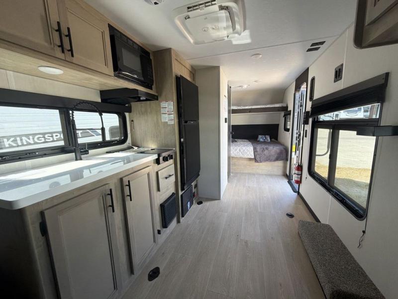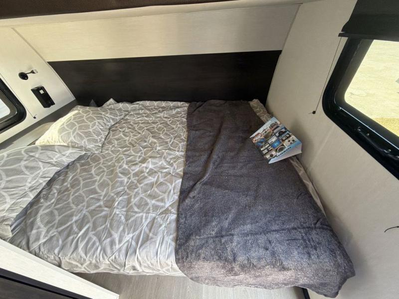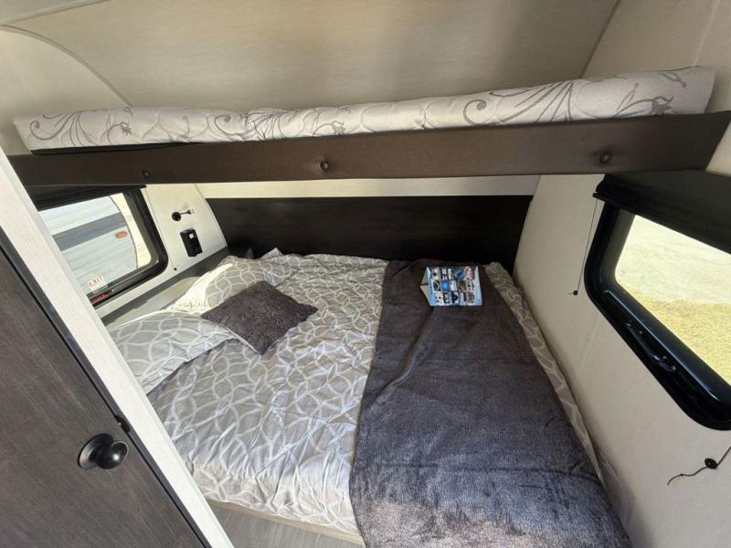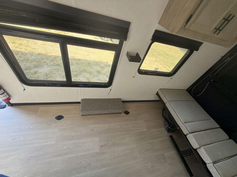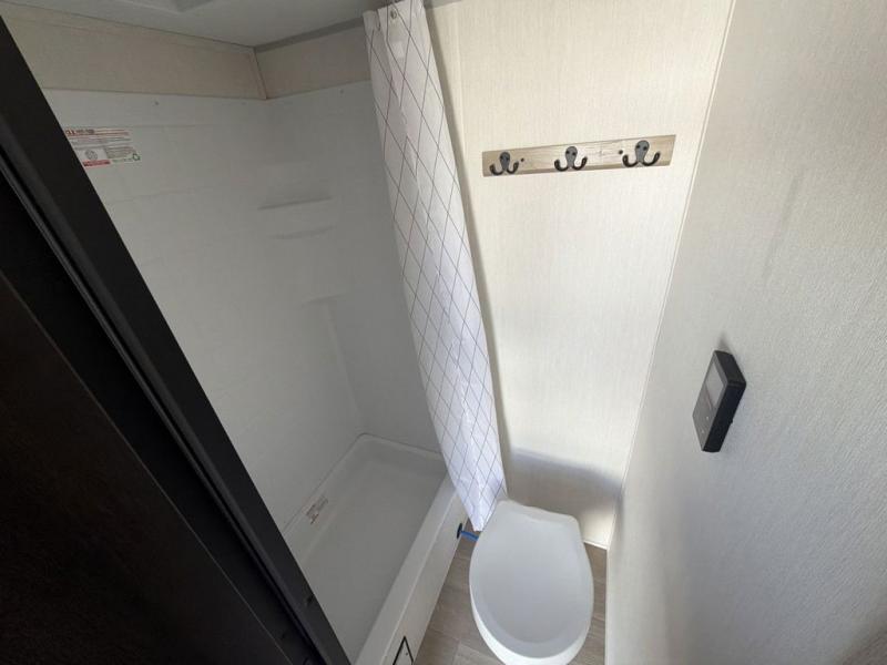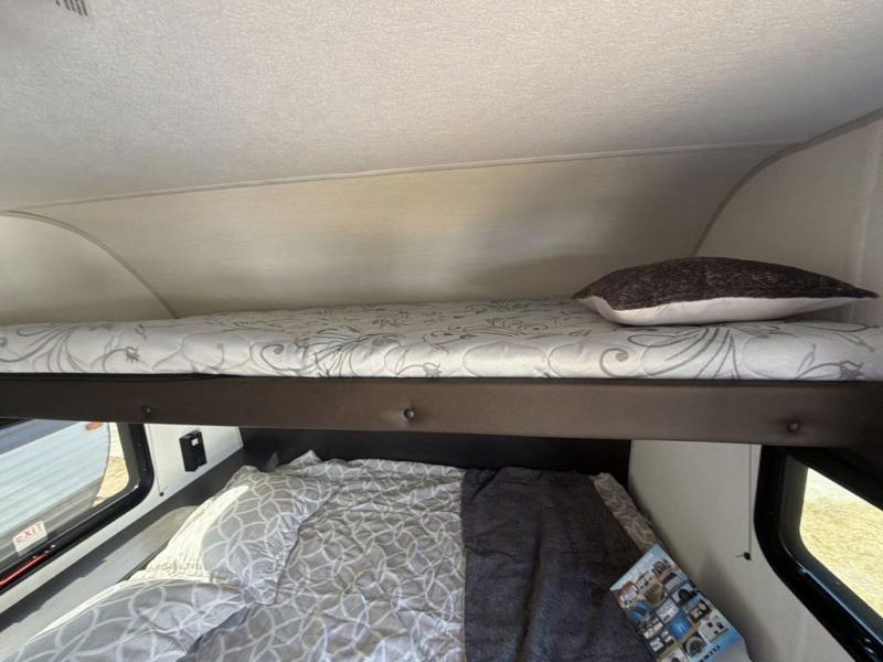Load up your favorite off-road toys with the ramp door into the 9' 4" garage with 13' 11" total cargo space when you utilize the space up front! Enjoy all of the at home features like a fully equipped kitchen with a cooktop, refrigerator, and a microwave. Comfortably eat your delicious meals at the rear dinette with a removable table for convenience. The private bathroom has a tub/shower for you to freshen up in the morning after getting a good night's rest on the front queen bed which also has a bunk bed above it too. There is also outside storage for your hiking or riding gear!