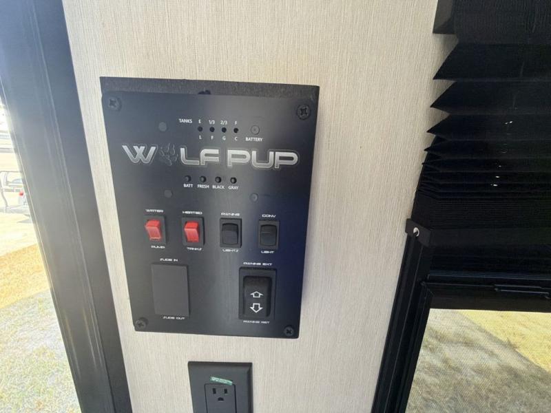 Each one of these Forest River Cherokee Wolf Pup Black Label travel trailers and toy hauler are lightweight and easy to tow! They are fully self-contained with ample tank capacities, an abundance of storage space, and filled with at home amenities. The full bath and kitchen amenities will make life at the campground easier than ever, and the outdoor patio awning will provide an inviting outdoor space. And you're sure to enjoy the Black Label upgrade with fiberglass gel coated side walls, frameless windows, upgraded solid surface countertops, and more stand-out features!