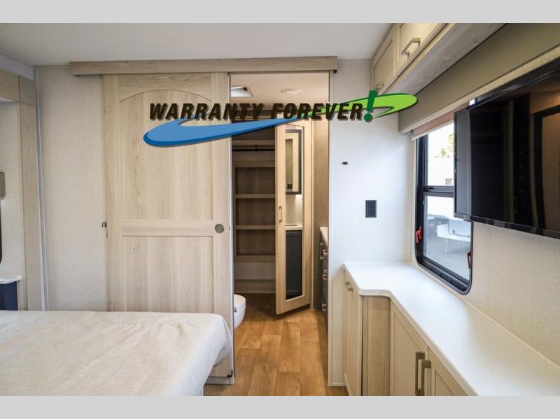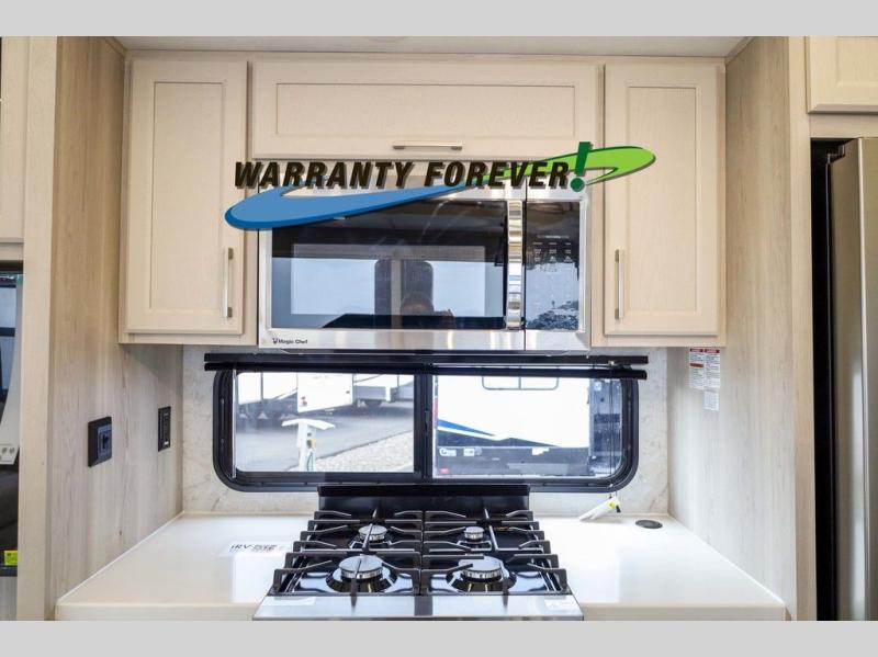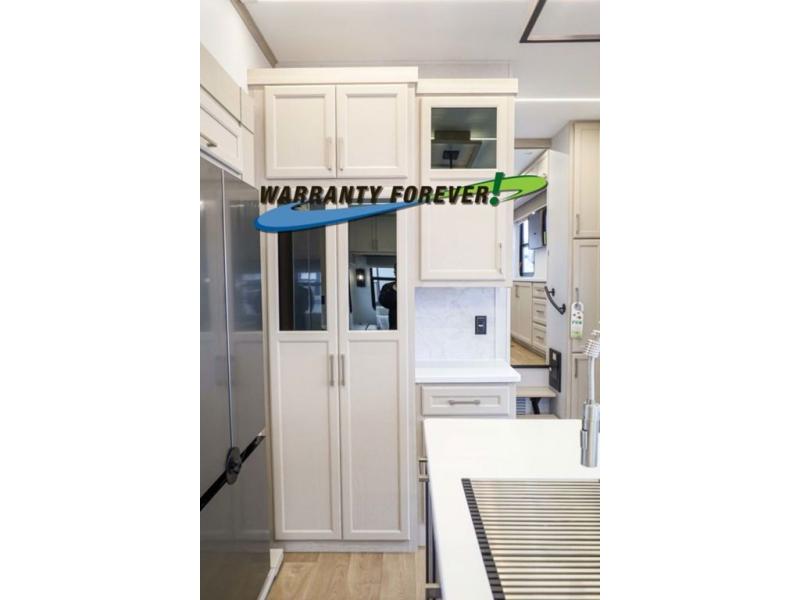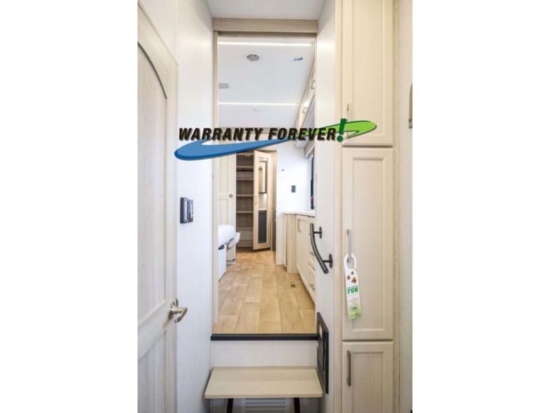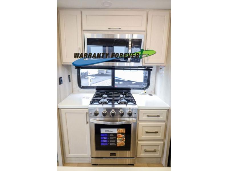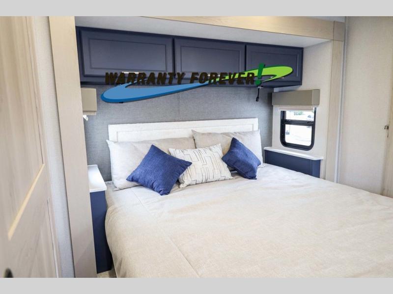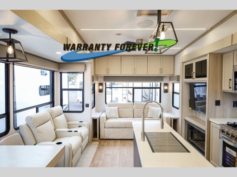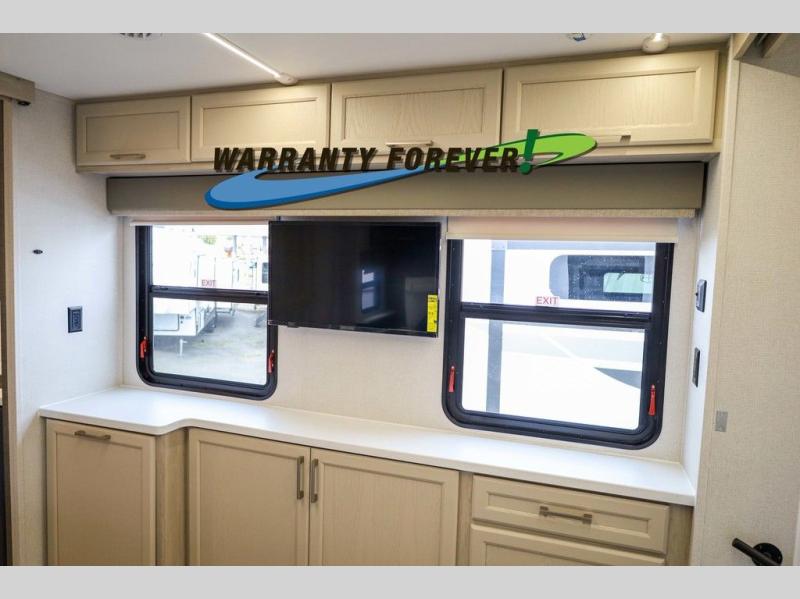 Experience a different camping life with residential furnishings and high-end features in each one of these Forest River Columbus fifth wheels! Durable construction begins with a 101" wide body, an all-welded aluminum frame superstructure, and high-gloss fiberglass vacuum bonded walls and slide out ends with dual Azdel. You will appreciate the Lippert axles, MORryde CRE 3000 suspension system, and 16" wheels with nitrogen-filled tires for a smooth tow from home to campground. Additional exterior features include a tire pressure monitoring system, a heated utility convenience center, an outside sprayer, and slam latch on all the storage doors. Inside, you'll be met with many luxurious amenities, including residential style crown molding throughout, roller day/night shades, upgraded true solid surface countertops in the bath and kitchen, plus solid wood steps.