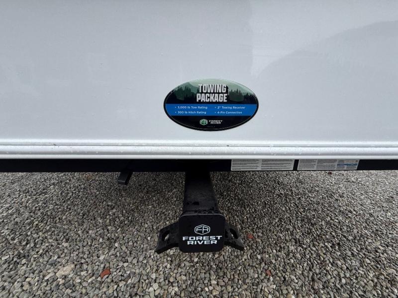 Experience a different camping life with residential furnishings and high-end features in each one of these Forest River Columbus fifth wheels! Durable construction begins with a 101" wide body, an all-welded aluminum frame superstructure, and high-gloss fiberglass vacuum bonded walls and slide out ends with dual Azdel. You will appreciate the Lippert axles, MORryde CRE 3000 suspension system, and 16" wheels with nitrogen-filled tires for a smooth tow from home to campground. Additional exterior features include a tire pressure monitoring system, a heated utility convenience center, an outside sprayer, and slam latch on all the storage doors. Inside, you'll be met with many luxurious amenities, including residential style crown molding throughout, roller day/night shades, upgraded true solid surface countertops in the bath and kitchen, plus solid wood steps.