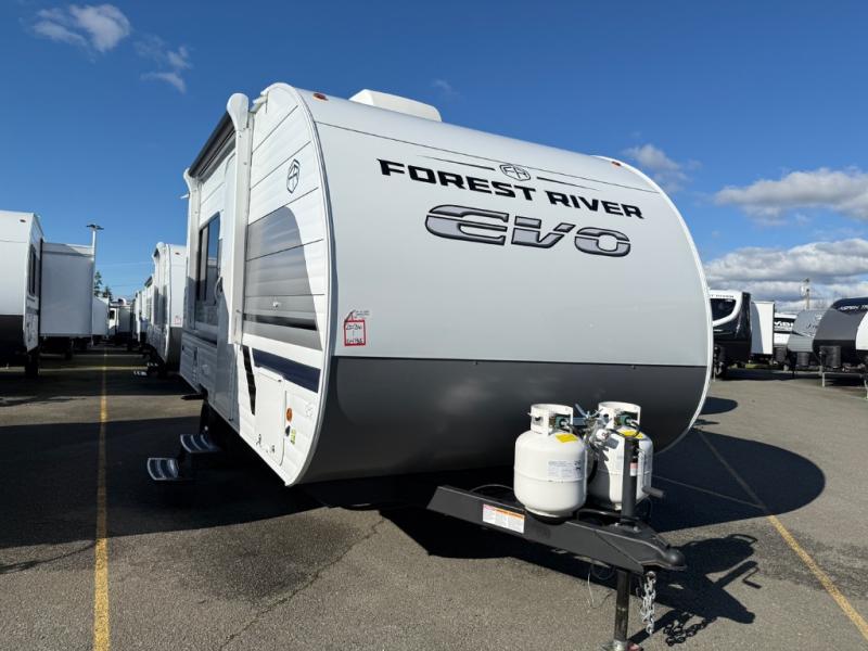 Style and function go hand-in-hand with the EVO travel trailers by Forest River. Like with all Forest River products, each unit is built with durable construction materials, providing years of use and countless memories. The eye-catching interiors and attention to detail are what set the EVO apart from the rest. Each model includes full bath and kitchen amenities, cozy seating and sleeping spaces, plus plenty of storage for your personal belongings, camp gear, food and more! There are a variety of floorplans to choose from, ensuring you'll find the EVO that fits your needs best!