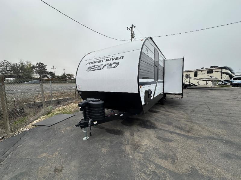 Style and function go hand-in-hand with the EVO travel trailers by Forest River. Like with all Forest River products, each unit is built with durable construction materials, providing years of use and countless memories. The eye-catching interiors and attention to detail are what set the EVO apart from the rest. Each model includes full bath and kitchen amenities, cozy seating and sleeping spaces, plus plenty of storage for your personal belongings, camp gear, food and more! There are a variety of floorplans to choose from, ensuring you'll find the EVO that fits your needs best!