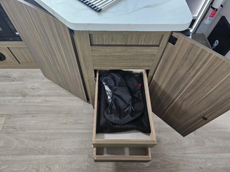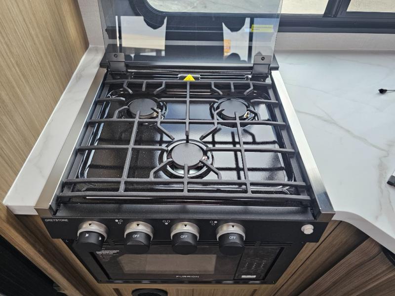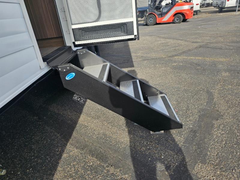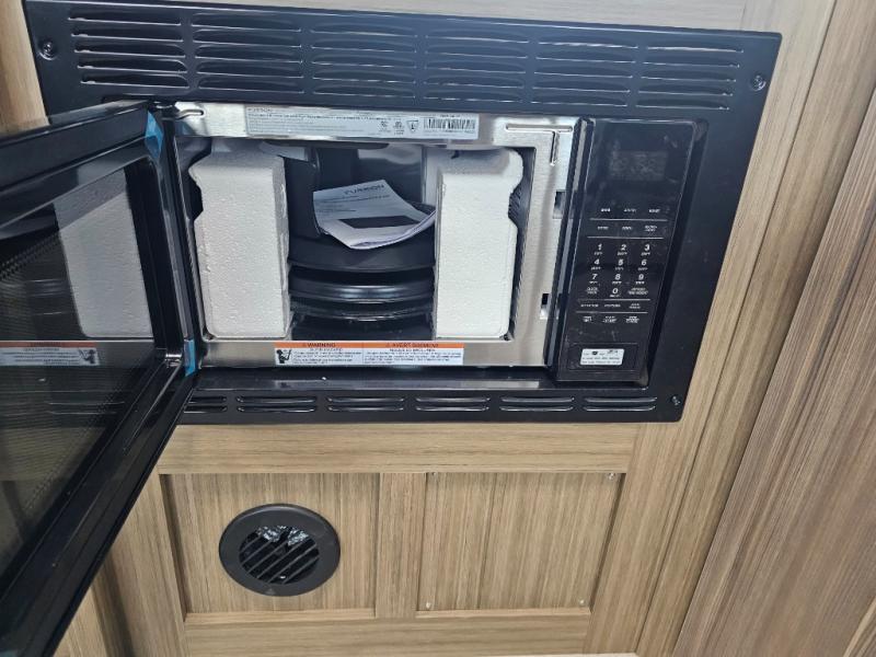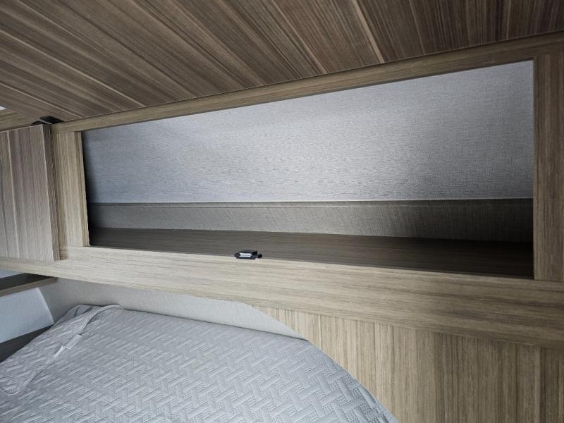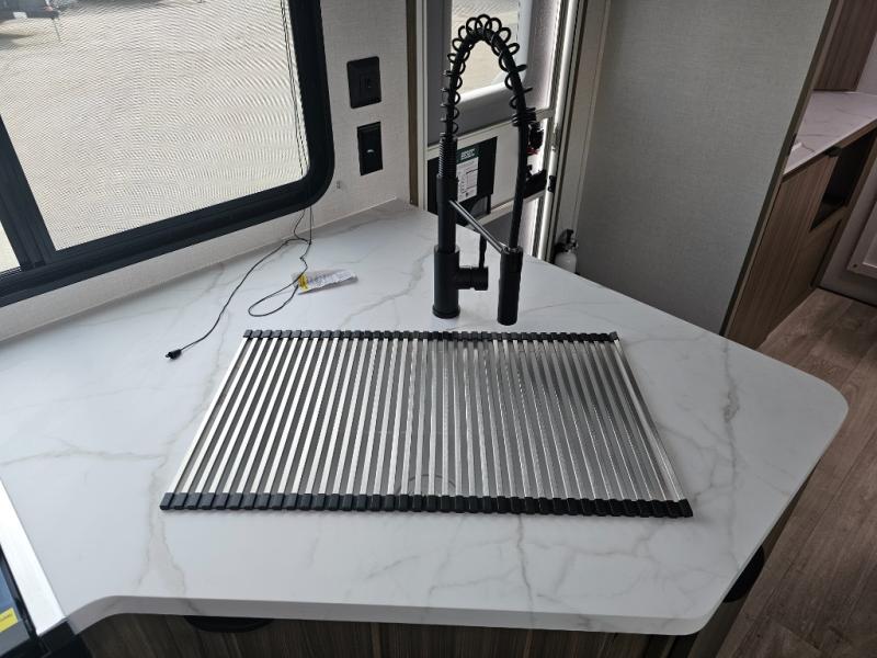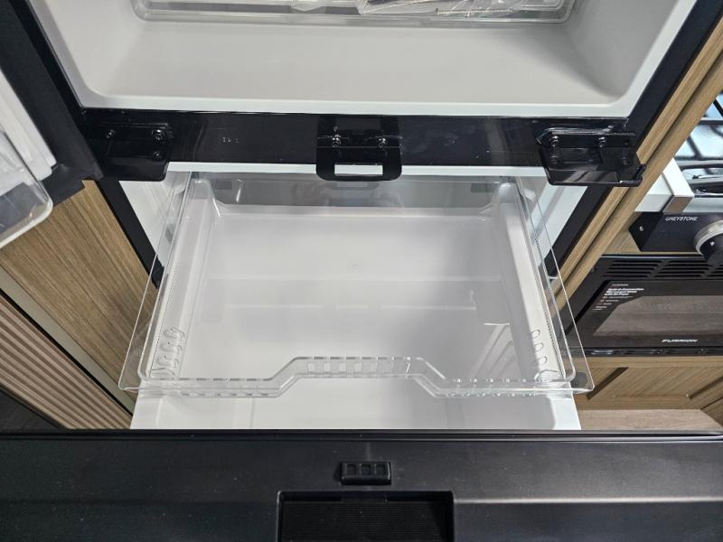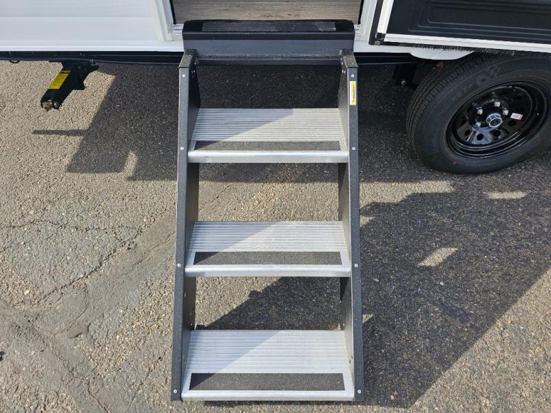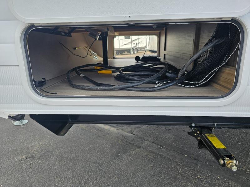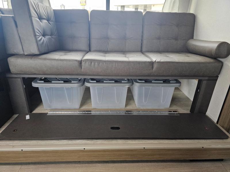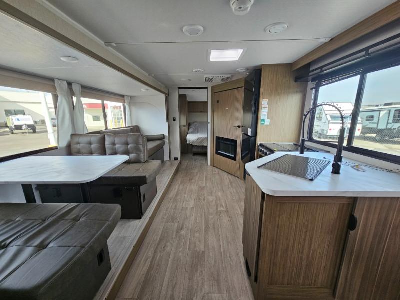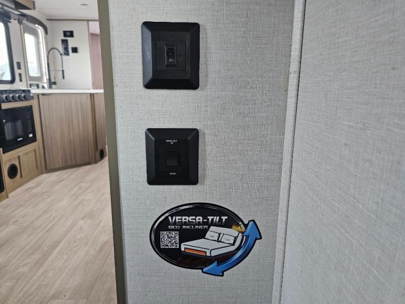 You're sure to make camping memories in this spacious travel trailer! You can sleep four to five people each night thanks to the custom king bed with Versa-Tilt in the front bedroom plus the Versa-Lounge and booth dinette within the large slide out! The full kitchen will let you make meals each day, and you'll appreciate the hidden pantry with shelves behind the fireplace. And don't overlook the full rear bath, complete with a tub/shower and ample counter space for your things.