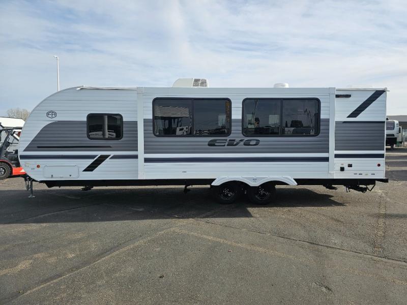 Style and function go hand-in-hand with the EVO travel trailers by Forest River. Like with all Forest River products, each unit is built with durable construction materials, providing years of use and countless memories. The eye-catching interiors and attention to detail are what set the EVO apart from the rest. Each model includes full bath and kitchen amenities, cozy seating and sleeping spaces, plus plenty of storage for your personal belongings, camp gear, food and more! There are a variety of floorplans to choose from, ensuring you'll find the EVO that fits your needs best!