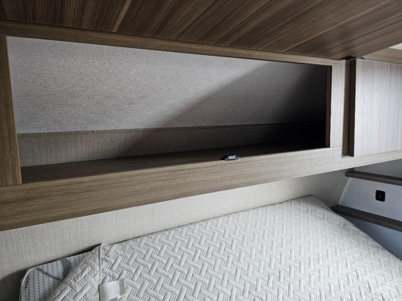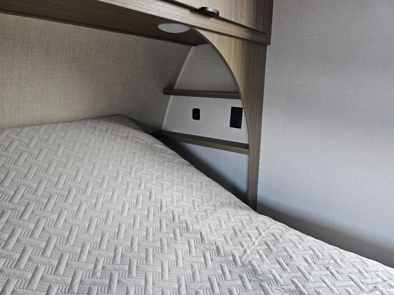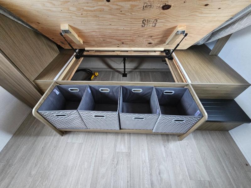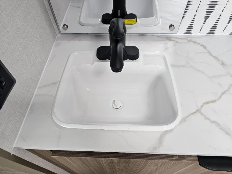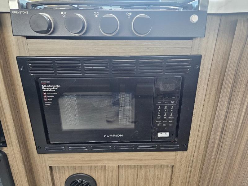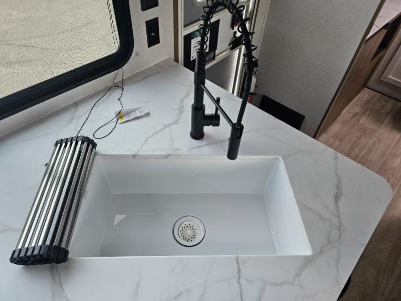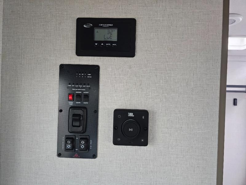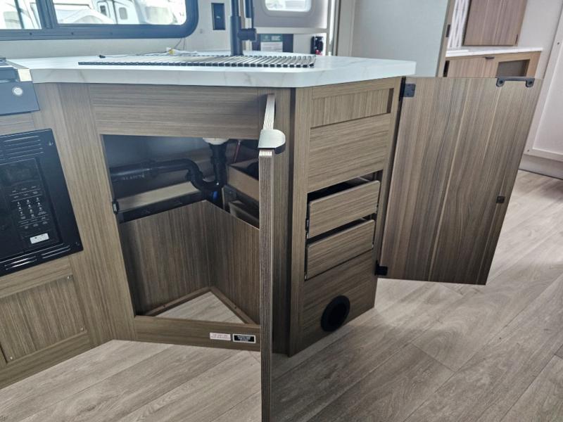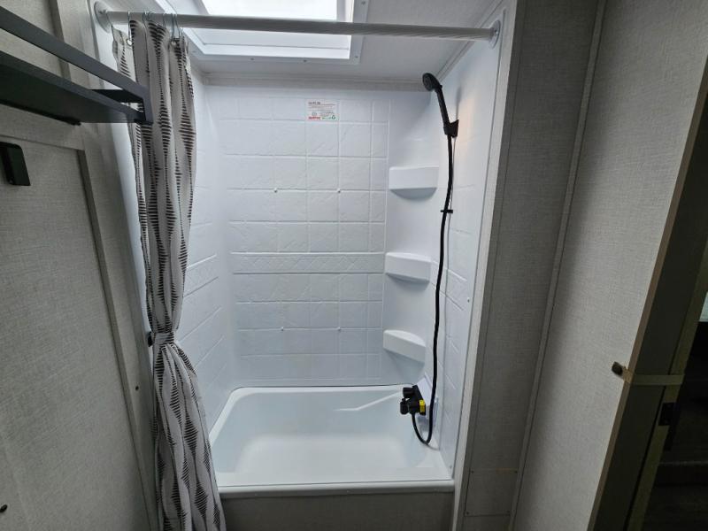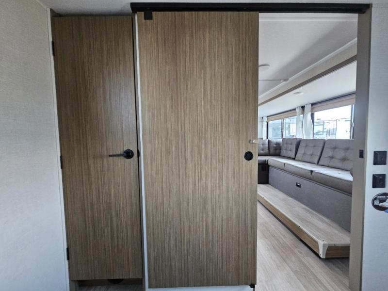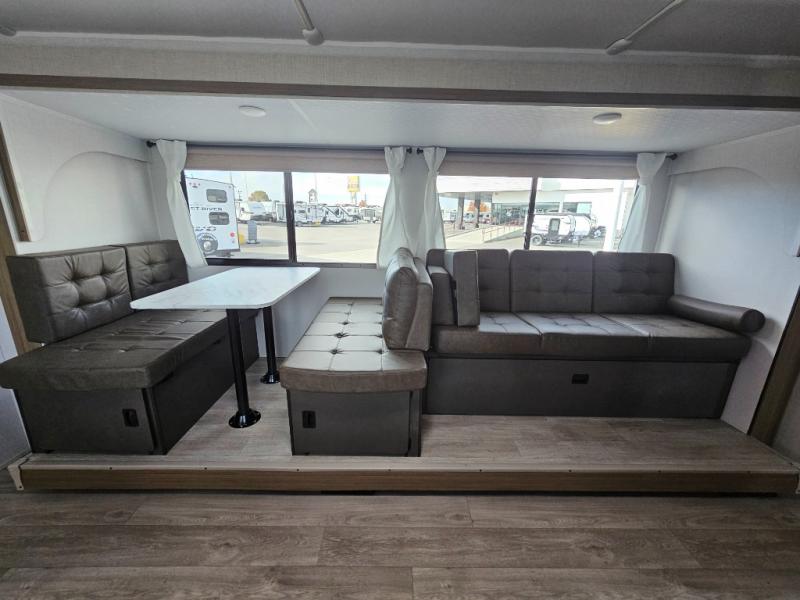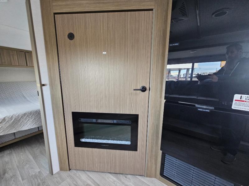You're sure to make camping memories in this spacious travel trailer! You can sleep four to five people each night thanks to the custom king bed with Versa-Tilt in the front bedroom plus the Versa-Lounge and booth dinette within the large slide out! The full kitchen will let you make meals each day, and you'll appreciate the hidden pantry with shelves behind the fireplace. And don't overlook the full rear bath, complete with a tub/shower and ample counter space for your things.