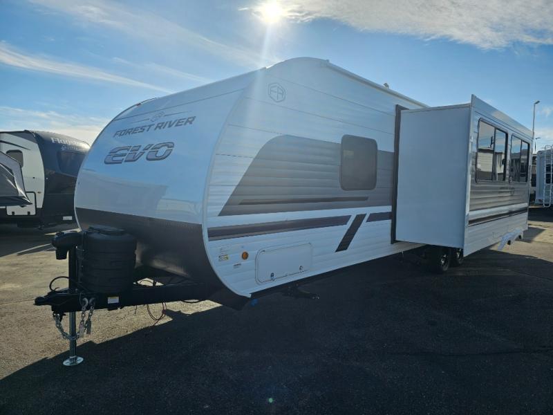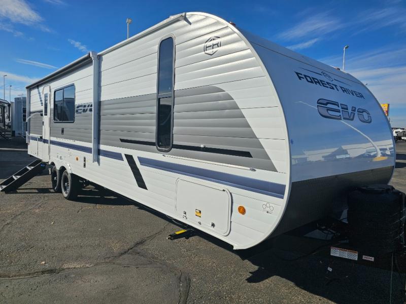 Style and function go hand-in-hand with the EVO travel trailers by Forest River. Like with all Forest River products, each unit is built with durable construction materials, providing years of use and countless memories. The eye-catching interiors and attention to detail are what set the EVO apart from the rest. Each model includes full bath and kitchen amenities, cozy seating and sleeping spaces, plus plenty of storage for your personal belongings, camp gear, food and more! There are a variety of floorplans to choose from, ensuring you'll find the EVO that fits your needs best!