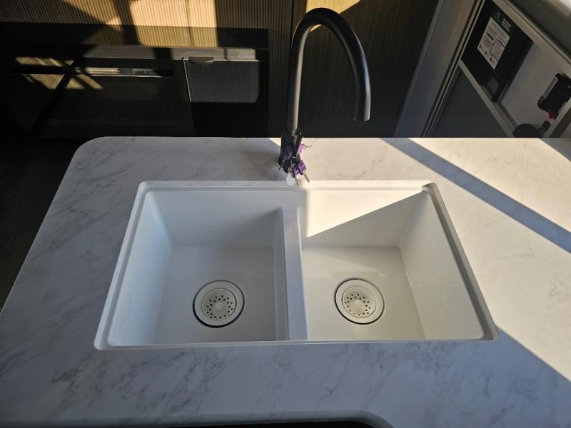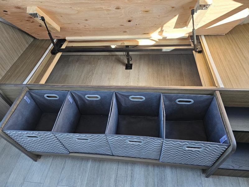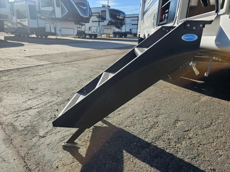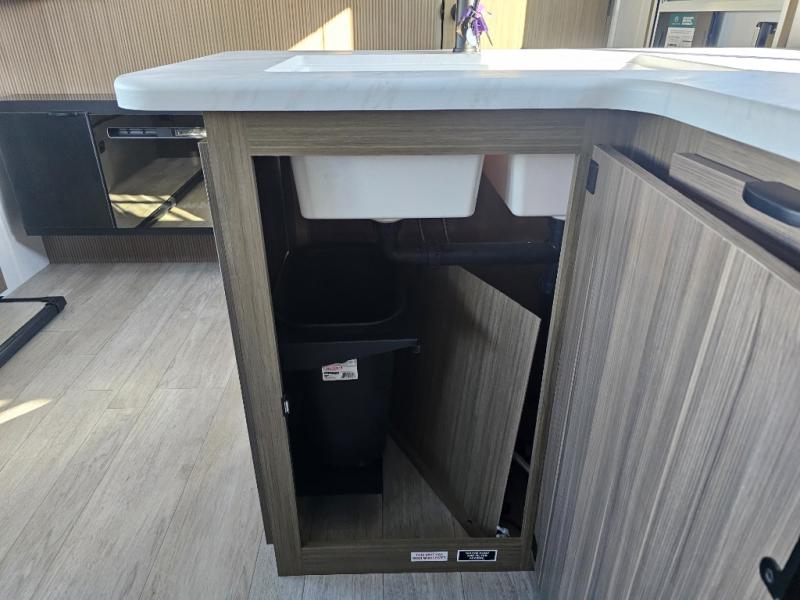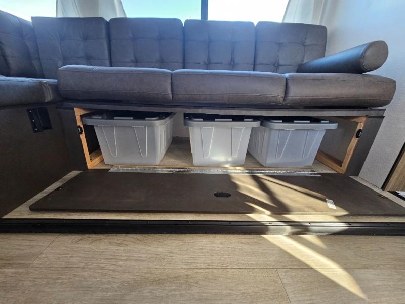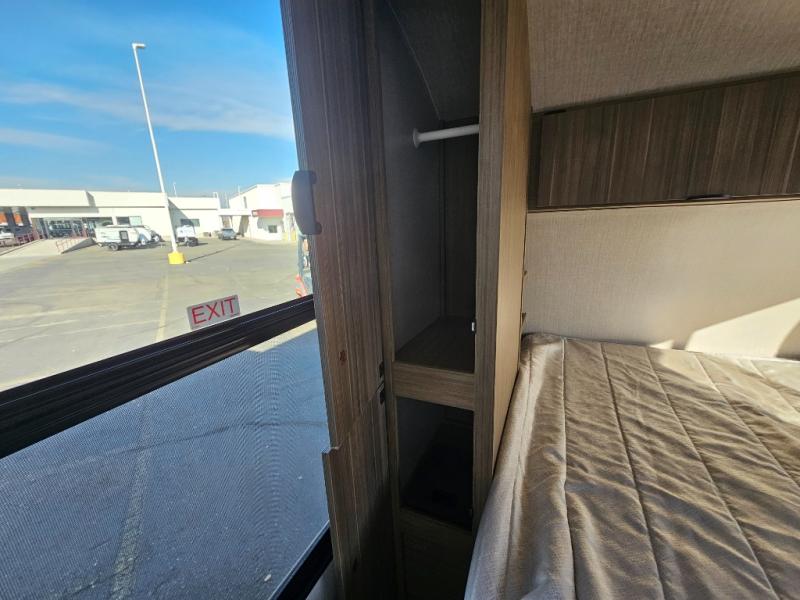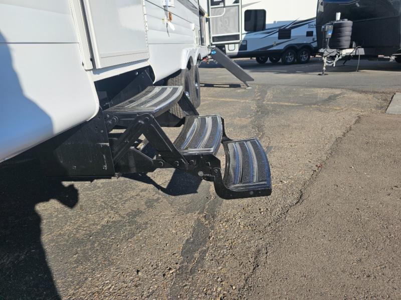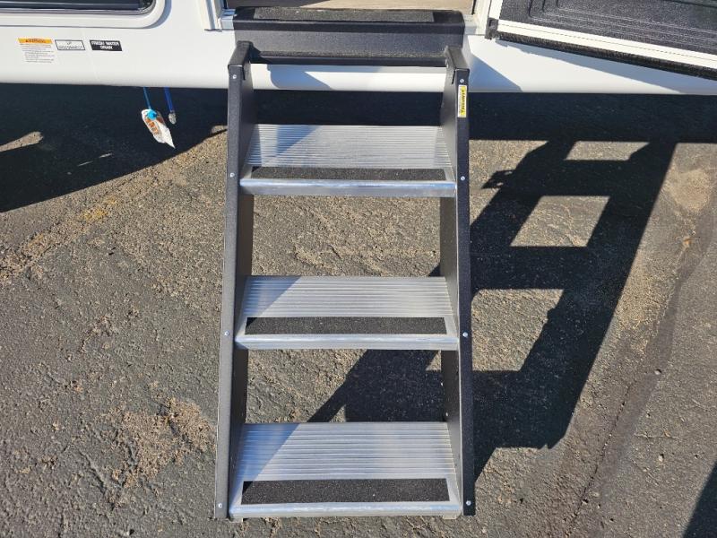 Whether you hike, bike, or relax, you will love being able to return to this trailer with a spacious main living and kitchen area thanks to the large slide out which includes a U-shaped dinette and Versa Lounge to relax on. The fireplace and entertainment center are a bonus, and the chef will enjoy being able to whip up meals while visiting with everyone. The walk-in pantry will come in handy as well especially when everyone is with you. When it is time for bed, four can sleep on the double-size bunks, two to four can sleep on the furniture, and the owners will enjoy their privacy in the front bedroom with a Versa-Tilt custom king bed, a closet, and overhead storage!