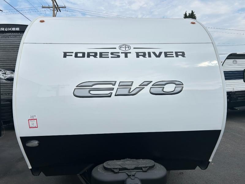 With any EVO travel trailer by Forest River you will find a durable RV made to last for years of memories. There are self-adjusting brakes, E-Z lube axles, an XL grab handle and two outside speakers to listen to your favorite tunes. The Luxury Package provides more convenient features such as, enclosed holding tanks with 12V heat pads, an outside shower, an LP Quick Connect, and a foot flush toilet. You'll also enjoy the Paramount Package that comes with an upgraded mattress and upgraded appliance package, a power tongue jack, an on-demand water heater, plus modern cloth roller shades with autostop in the living room and bedroom.