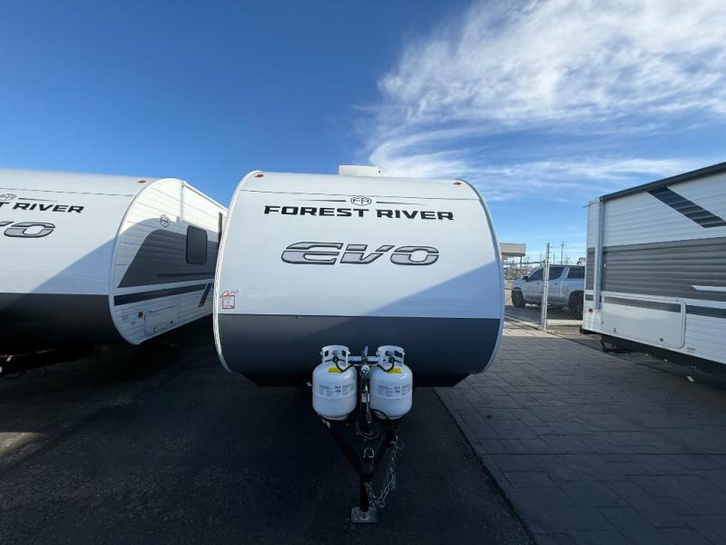 The Forest River EVO travel trailers and toy hauler travel trailers are ultra comfortable and lightweight, perfect for first time or seasoned campers alike! You will love how easy it will be to relax with residential features that will make your space feel just like home, and the durable construction means you can enjoy your RV for years to come. There are a wide variety of floorplans to choose from, including couple's trailers, bunk models, and toy haulers, all with full bath and kitchen amenities and plenty of storage for all your gear!