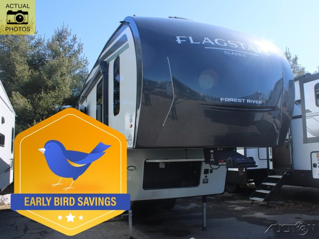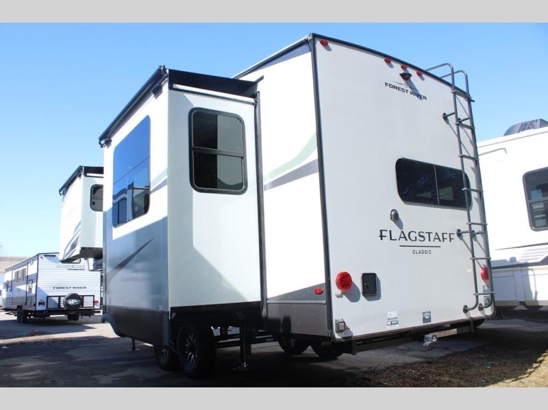 Each one of these Forest River Flagstaff Classic fifth wheels or travel trailers will be your home on wheels! Their quality craftsmanship and attention to detail shines through the enclosed underbelly, the fully laminated walkable roof, and six-sided full-aluminum frame. Towing your unit will be easy with the Goodyear Endurance tires plus RoadTech tire pressure monitoring. Additional exterior features include a 200W solar panel, slam baggage doors, a Key-Alike lock system, and double 30 lb. LP tanks to name a few conveniences. Head inside to find a residential style gas range, solid surface kitchen and bath countertops, soft close hidden cabinet hinges, and more comforts!