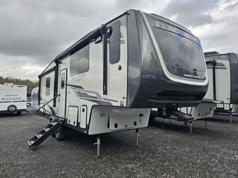 Each one of these Forest River Flagstaff Classic fifth wheels or travel trailers will be your home on wheels! Their quality craftsmanship and attention to detail shines through the enclosed underbelly, the fully laminated walkable roof, and six-sided full-aluminum frame. Towing your unit will be easy with the Goodyear Endurance tires plus RoadTech tire pressure monitoring. Additional exterior features include a 200W solar panel, slam baggage doors, a Key-Alike lock system, and double 30 lb. LP tanks to name a few conveniences. Head inside to find a residential style gas range, solid surface kitchen and bath countertops, soft close hidden cabinet hinges, and more comforts!