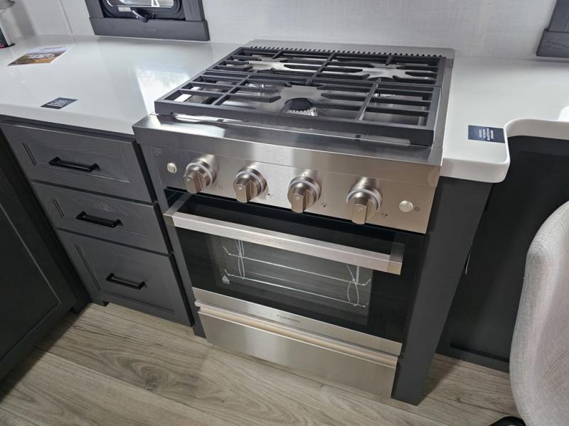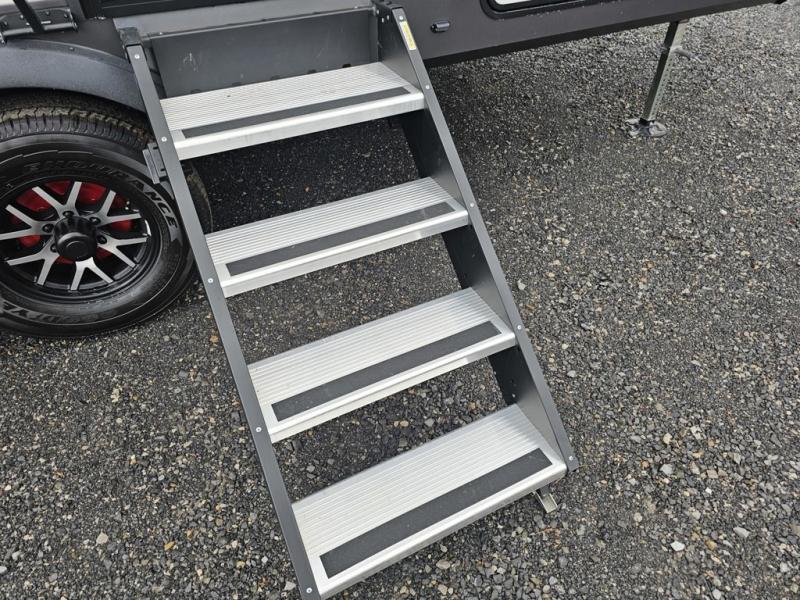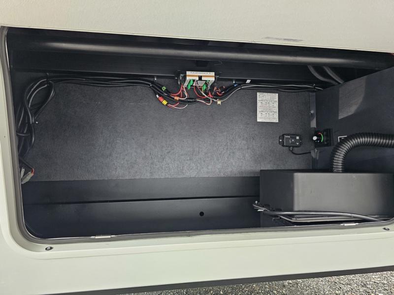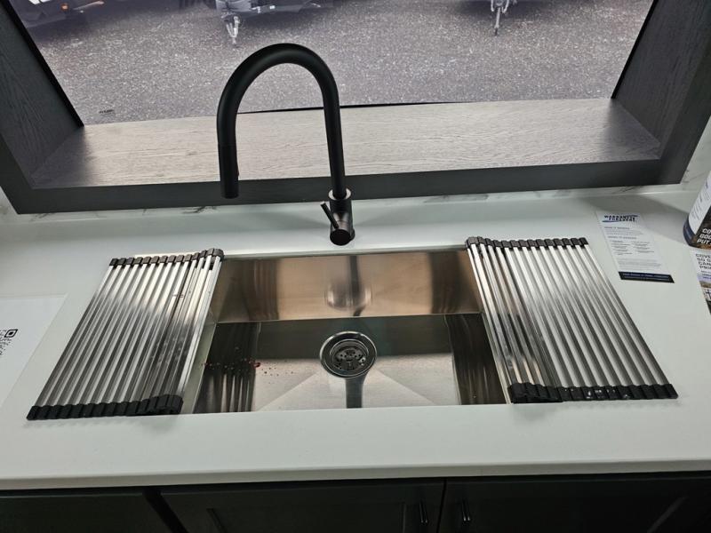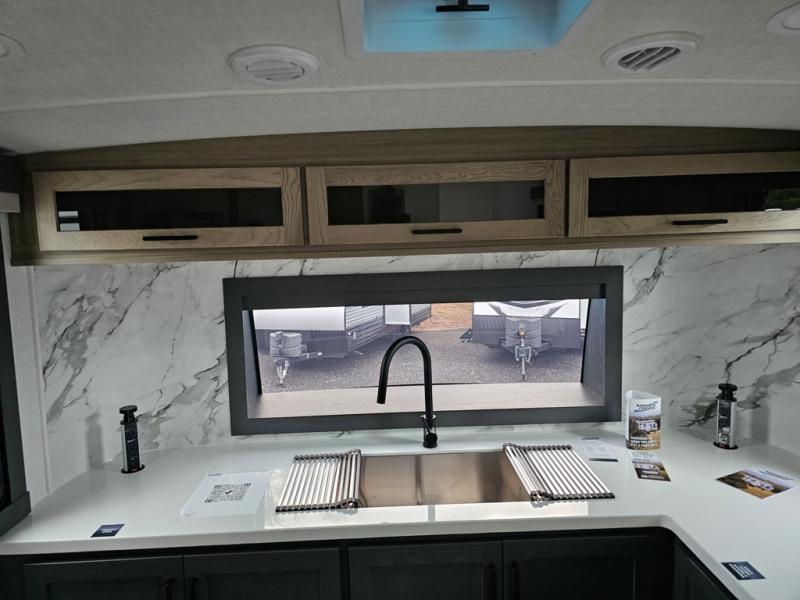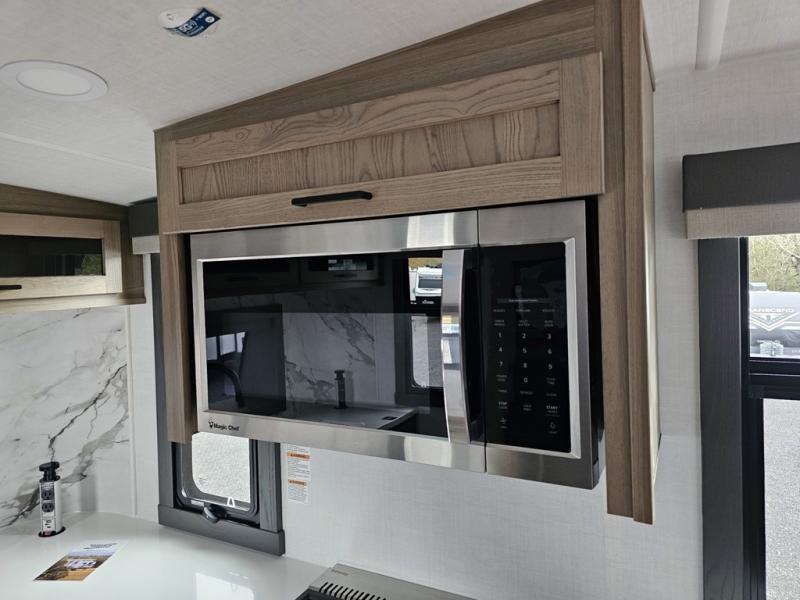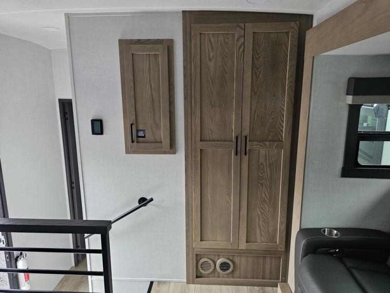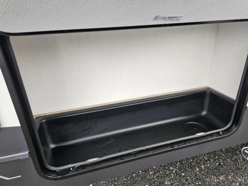 Designed for campers who want residential comfort with a layout that feels open, inviting, and easy to live in. The living area is set up for relaxing just as much as entertaining, making it a great fit for extended stays or weekends when you want to truly unwind. The theater seating gives you a comfortable spot to kick back, whether you’re watching a movie or winding down after a long day. The bedroom features a queen bed, creating a cozy retreat that still leaves room to move comfortably around the space. In the rear bedroom, a dedicated vanity adds a touch of everyday convenience, giving you a practical place. The full bathroom offers everything you need in one well-designed space, helping the coach feel more like home than a camper. Outside, generous pass-thru storage makes it easy to bring along larger gear, tools, or outdoor furniture while keeping the interior clean and uncluttered.