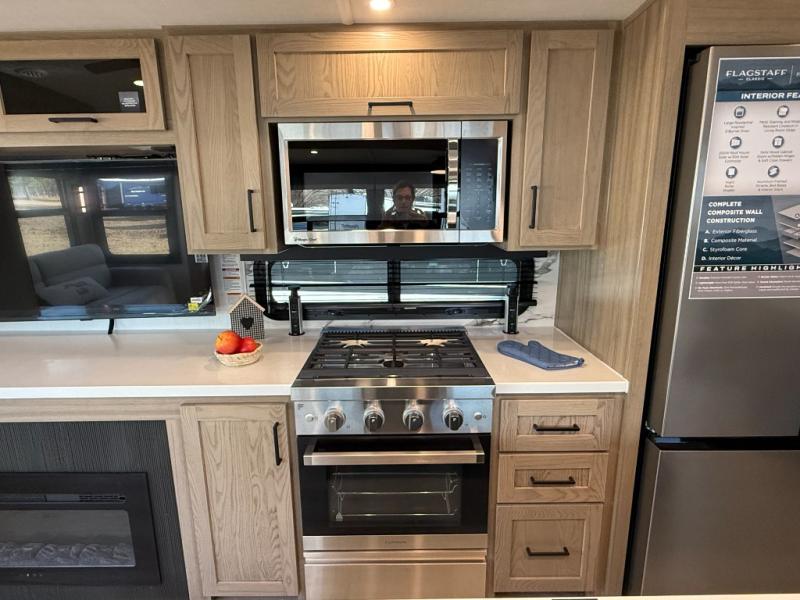 Each one of these Forest River Flagstaff Classic fifth wheels or travel trailers will be your home on wheels! Their quality craftsmanship and attention to detail shines through the enclosed underbelly, the fully laminated walkable roof, and six-sided full-aluminum frame. Towing your unit will be easy with the Goodyear Endurance tires plus RoadTech tire pressure monitoring. Additional exterior features include a 200W solar panel, slam baggage doors, a Key-Alike lock system, and double 30 lb. LP tanks to name a few conveniences. Head inside to find a residential style gas range, solid surface kitchen and bath countertops, soft close hidden cabinet hinges, and more comforts!