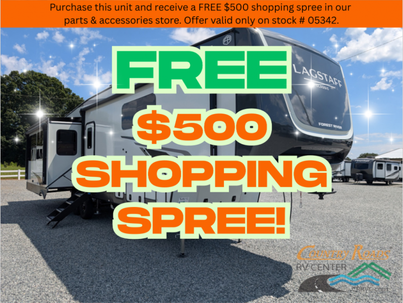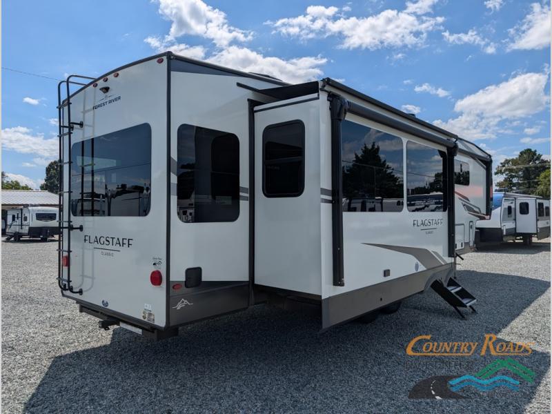 Each one of these Forest River Flagstaff Classic fifth wheels or travel trailers will be your home on wheels! Their quality craftsmanship and attention to detail shines through the enclosed underbelly, the fully laminated walkable roof, and six-sided full-aluminum frame. Towing your unit will be easy with the Goodyear Endurance tires plus RoadTech tire pressure monitoring. Additional exterior features include a 200W solar panel, slam baggage doors, a Key-Alike lock system, and double 30 lb. LP tanks to name a few conveniences. Head inside to find a residential style gas range, solid surface kitchen and bath countertops, soft close hidden cabinet hinges, and more comforts!