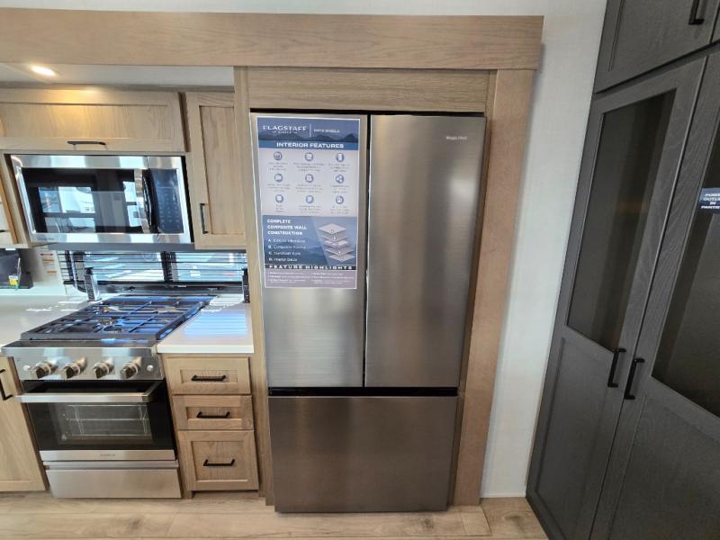 Each one of these Forest River Flagstaff Classic fifth wheels or travel trailers will be your home on wheels! Their quality craftsmanship and attention to detail shines through the enclosed underbelly, the fully laminated walkable roof, and six-sided full-aluminum frame. Towing your unit will be easy with the Goodyear Endurance tires plus RoadTech tire pressure monitoring. Additional exterior features include a 200W solar panel, slam baggage doors, a Key-Alike lock system, and double 30 lb. LP tanks to name a few conveniences. Head inside to find a residential style gas range, solid surface kitchen and bath countertops, soft close hidden cabinet hinges, and more comforts!