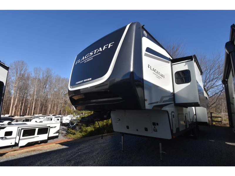 Each one of these Forest River Flagstaff Classic fifth wheels or travel trailers will be your home on wheels! Their quality craftsmanship and attention to detail shines through the enclosed underbelly, the fully laminated walkable roof, and six-sided full-aluminum frame. Towing your unit will be easy with the Goodyear Endurance tires plus RoadTech tire pressure monitoring. Additional exterior features include a 200W solar panel, slam baggage doors, a Key-Alike lock system, and double 30 lb. LP tanks to name a few conveniences. Head inside to find a residential style gas range, solid surface kitchen and bath countertops, soft close hidden cabinet hinges, and more comforts!