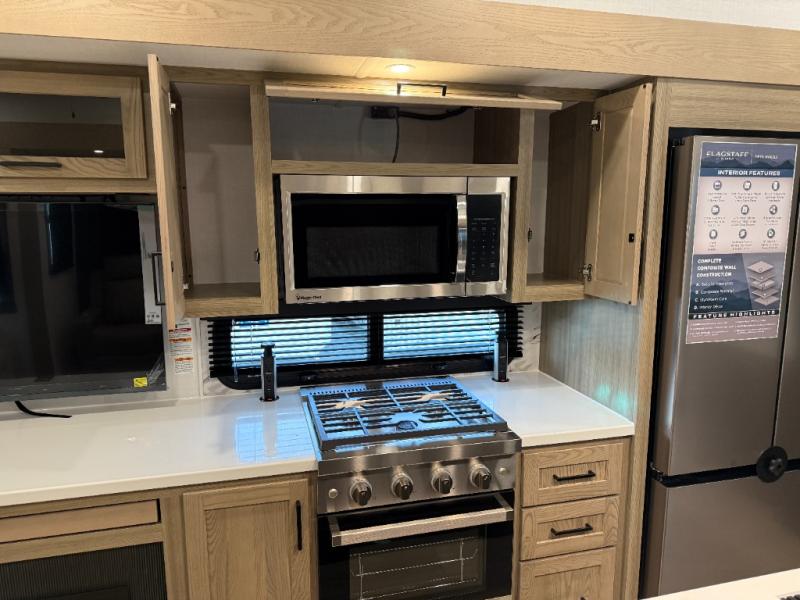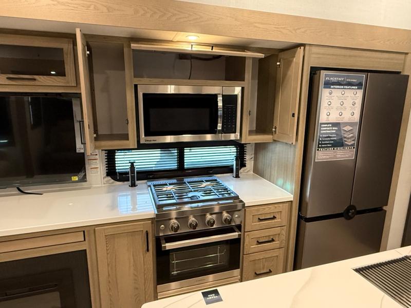 Each one of these Forest River Flagstaff Classic fifth wheels or travel trailers will be your home on wheels! Their quality craftsmanship and attention to detail shines through the enclosed underbelly, the fully laminated walkable roof, and six-sided full-aluminum frame. Towing your unit will be easy with the Goodyear Endurance tires plus RoadTech tire pressure monitoring. Additional exterior features include a 200W solar panel, slam baggage doors, a Key-Alike lock system, and double 30 lb. LP tanks to name a few conveniences. Head inside to find a residential style gas range, solid surface kitchen and bath countertops, soft close hidden cabinet hinges, and more comforts!