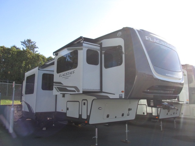 Each one of these Forest River Flagstaff Classic fifth wheels or travel trailers will be your home on wheels! Their quality craftsmanship and attention to detail shines through the enclosed underbelly, the fully laminated walkable roof, and six-sided full-aluminum frame. Towing your unit will be easy with the Goodyear Endurance tires plus RoadTech tire pressure monitoring. Additional exterior features include a 200W solar panel, slam baggage doors, a Key-Alike lock system, and double 30 lb. LP tanks to name a few conveniences. Head inside to find a residential style gas range, solid surface kitchen and bath countertops, soft close hidden cabinet hinges, and more comforts!