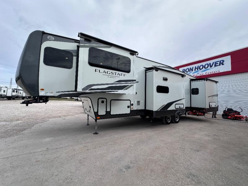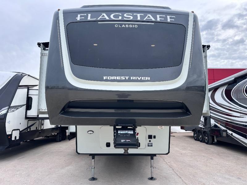 Each one of these Forest River Flagstaff Classic fifth wheels or travel trailers will be your home on wheels! Their quality craftsmanship and attention to detail shines through the enclosed underbelly, the fully laminated walkable roof, and six-sided full-aluminum frame. Towing your unit will be easy with the Goodyear Endurance tires plus RoadTech tire pressure monitoring. Additional exterior features include a 200W solar panel, slam baggage doors, a Key-Alike lock system, and double 30 lb. LP tanks to name a few conveniences. Head inside to find a residential style gas range, solid surface kitchen and bath countertops, soft close hidden cabinet hinges, and more comforts!