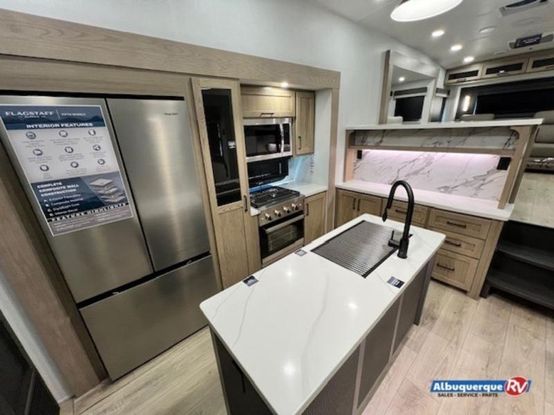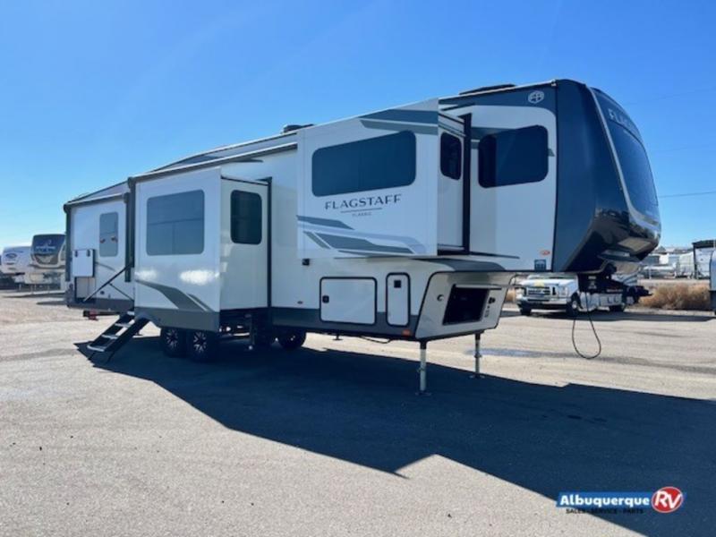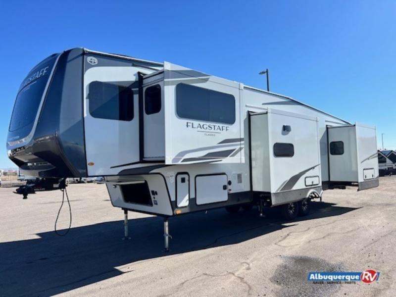 Each one of these Forest River Flagstaff Classic fifth wheels or travel trailers will be your home on wheels! Their quality craftsmanship and attention to detail shines through the enclosed underbelly, the fully laminated walkable roof, and six-sided full-aluminum frame. Towing your unit will be easy with the Goodyear Endurance tires plus RoadTech tire pressure monitoring. Additional exterior features include a 200W solar panel, slam baggage doors, a Key-Alike lock system, and double 30 lb. LP tanks to name a few conveniences. Head inside to find a residential style gas range, solid surface kitchen and bath countertops, soft close hidden cabinet hinges, and more comforts!