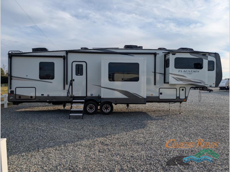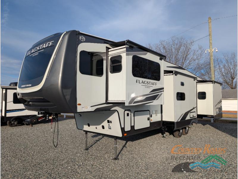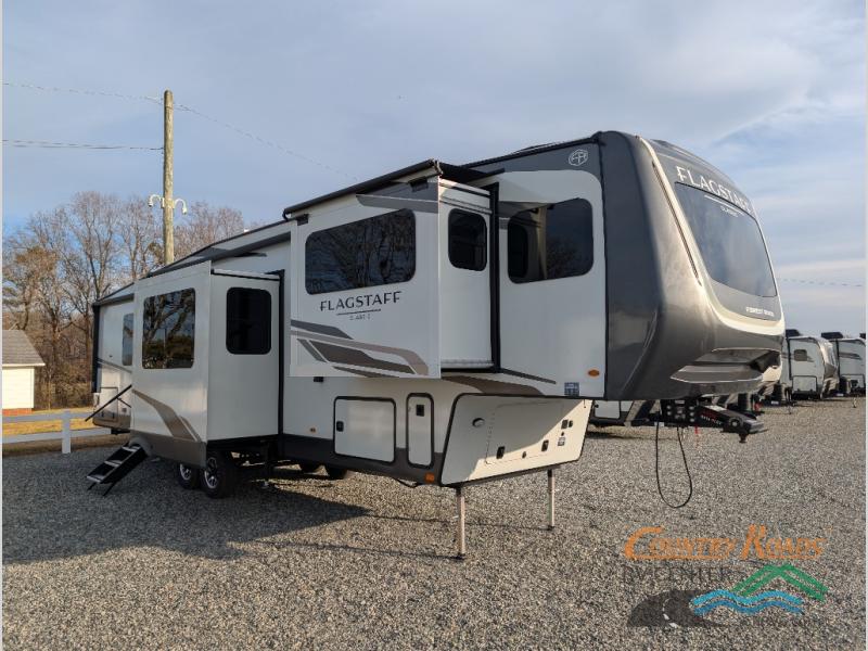 Each one of these Forest River Flagstaff Classic fifth wheels or travel trailers will be your home on wheels! Their quality craftsmanship and attention to detail shines through the enclosed underbelly, the fully laminated walkable roof, and six-sided full-aluminum frame. Towing your unit will be easy with the Goodyear Endurance tires plus RoadTech tire pressure monitoring. Additional exterior features include a 200W solar panel, slam baggage doors, a Key-Alike lock system, and double 30 lb. LP tanks to name a few conveniences. Head inside to find a residential style gas range, solid surface kitchen and bath countertops, soft close hidden cabinet hinges, and more comforts!