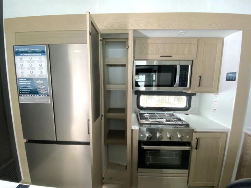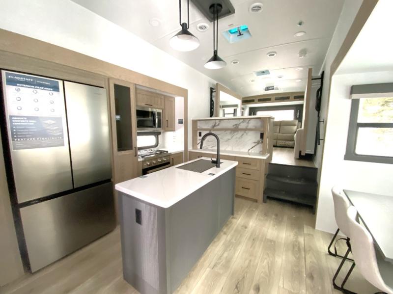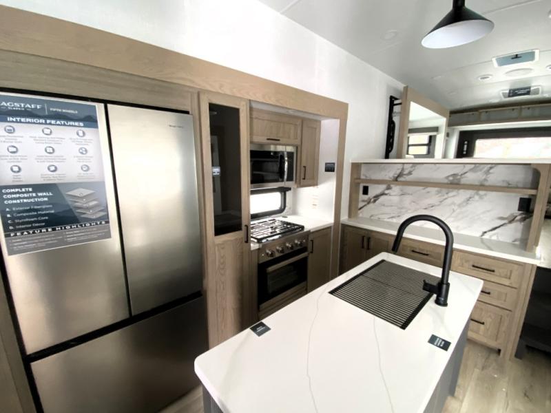 Each one of these Forest River Flagstaff Classic fifth wheels or travel trailers will be your home on wheels! Their quality craftsmanship and attention to detail shines through the enclosed underbelly, the fully laminated walkable roof, and six-sided full-aluminum frame. Towing your unit will be easy with the Goodyear Endurance tires plus RoadTech tire pressure monitoring. Additional exterior features include a 200W solar panel, slam baggage doors, a Key-Alike lock system, and double 30 lb. LP tanks to name a few conveniences. Head inside to find a residential style gas range, solid surface kitchen and bath countertops, soft close hidden cabinet hinges, and more comforts!