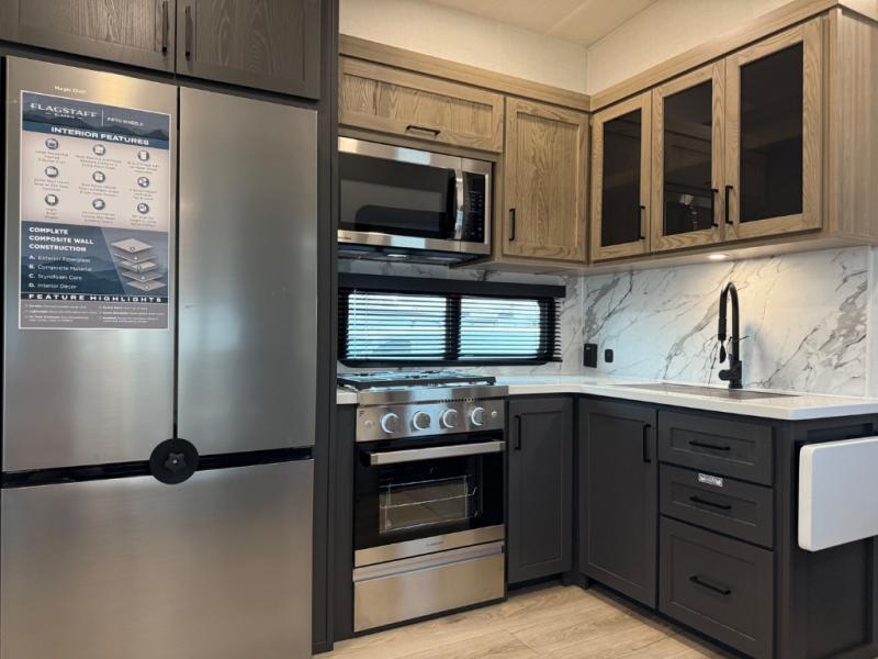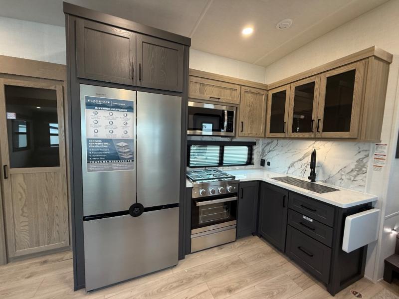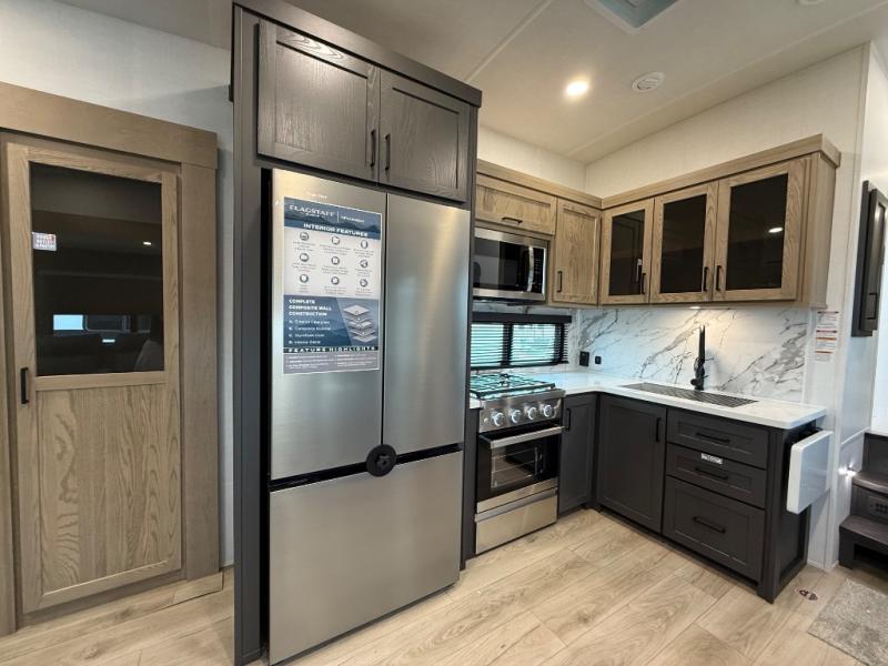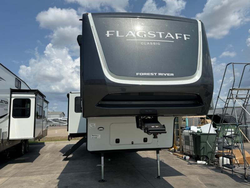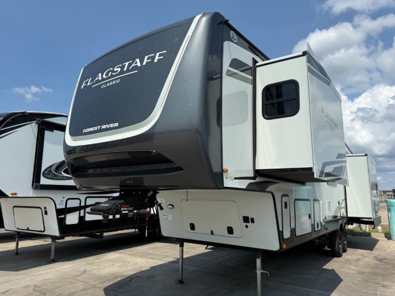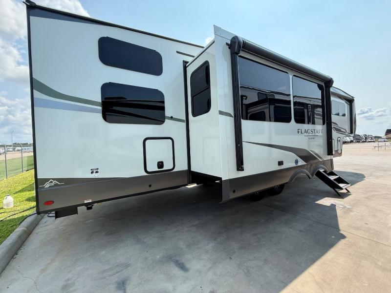 Each one of these Forest River Flagstaff Classic fifth wheels or travel trailers will be your home on wheels! Their quality craftsmanship and attention to detail shines through the enclosed underbelly, the fully laminated walkable roof, and six-sided full-aluminum frame. Towing your unit will be easy with the Goodyear Endurance tires plus RoadTech tire pressure monitoring. Additional exterior features include a 200W solar panel, slam baggage doors, a Key-Alike lock system, and double 30 lb. LP tanks to name a few conveniences. Head inside to find a residential style gas range, solid surface kitchen and bath countertops, soft close hidden cabinet hinges, and more comforts!