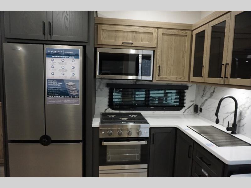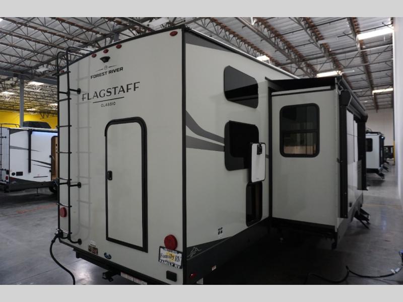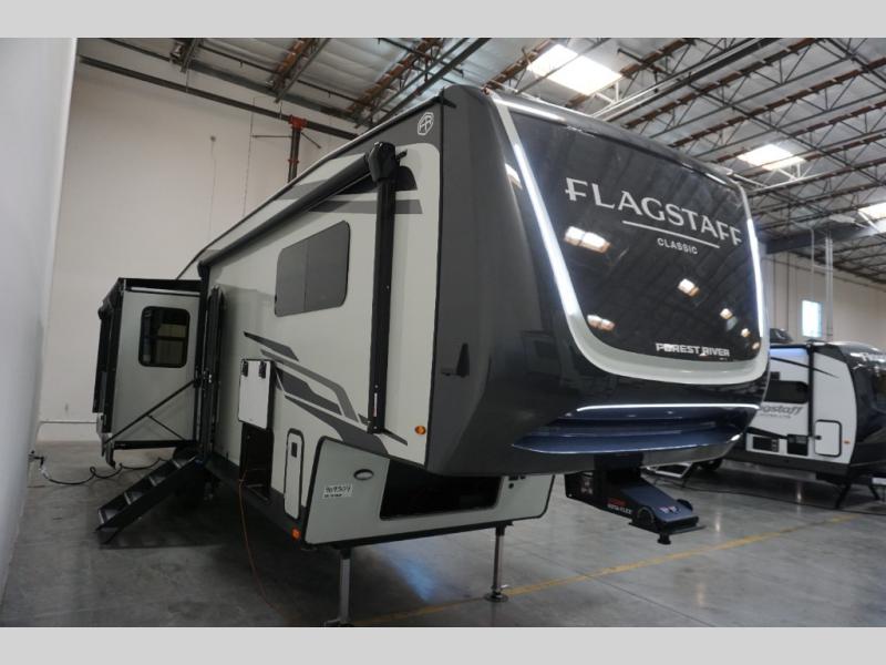 Each one of these Forest River Flagstaff Classic fifth wheels or travel trailers will be your home on wheels! Their quality craftsmanship and attention to detail shines through the enclosed underbelly, the fully laminated walkable roof, and six-sided full-aluminum frame. Towing your unit will be easy with the Goodyear Endurance tires plus RoadTech tire pressure monitoring. Additional exterior features include a 200W solar panel, slam baggage doors, a Key-Alike lock system, and double 30 lb. LP tanks to name a few conveniences. Head inside to find a residential style gas range, solid surface kitchen and bath countertops, soft close hidden cabinet hinges, and more comforts!