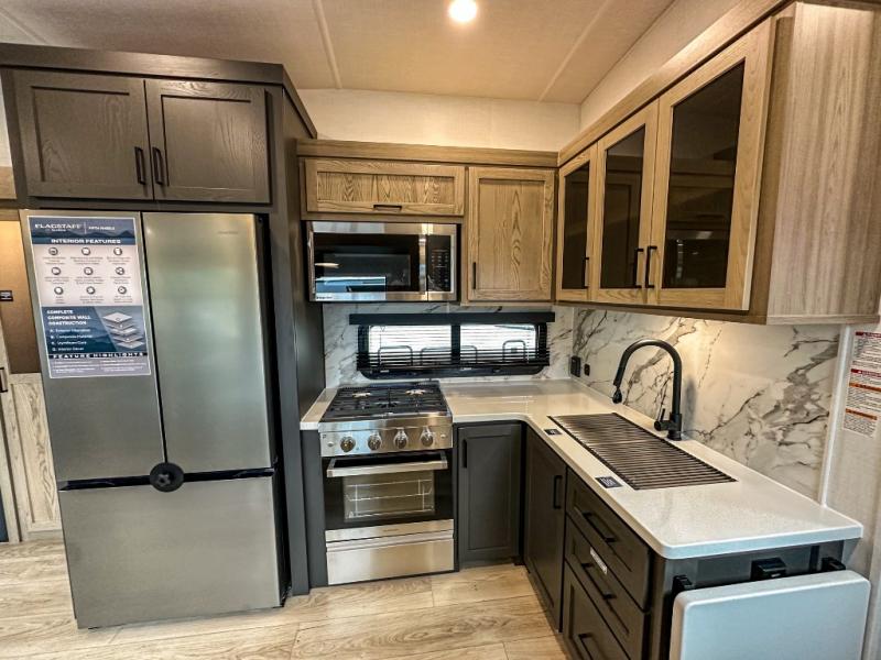Each one of these Forest River Flagstaff Classic fifth wheels or travel trailers will be your home on wheels! Their quality craftsmanship and attention to detail shines through the enclosed underbelly, the fully laminated walkable roof, and six-sided full-aluminum frame. Towing your unit will be easy with the Goodyear Endurance tires plus RoadTech tire pressure monitoring. Additional exterior features include a 200W solar panel, slam baggage doors, a Key-Alike lock system, and double 30 lb. LP tanks to name a few conveniences. Head inside to find a residential style gas range, solid surface kitchen and bath countertops, soft close hidden cabinet hinges, and more comforts!
