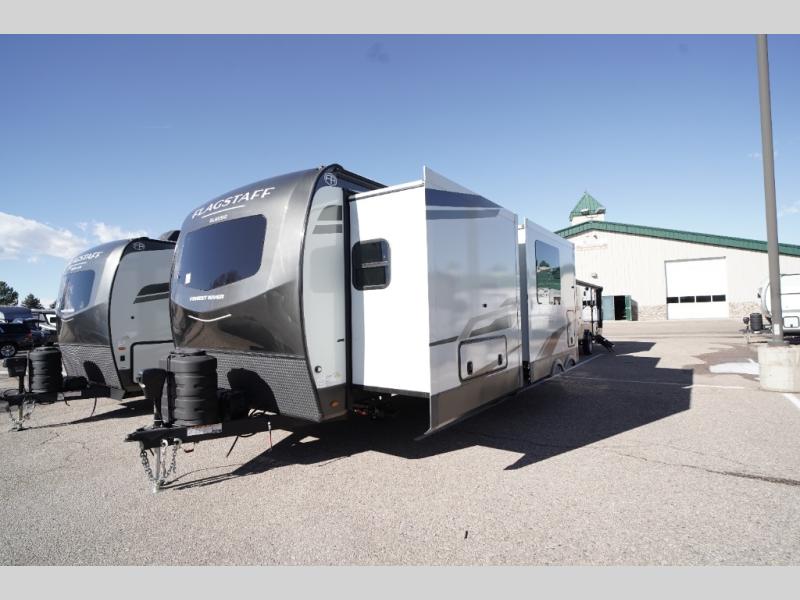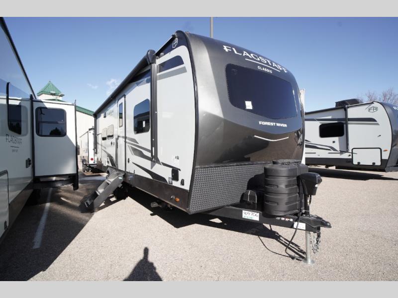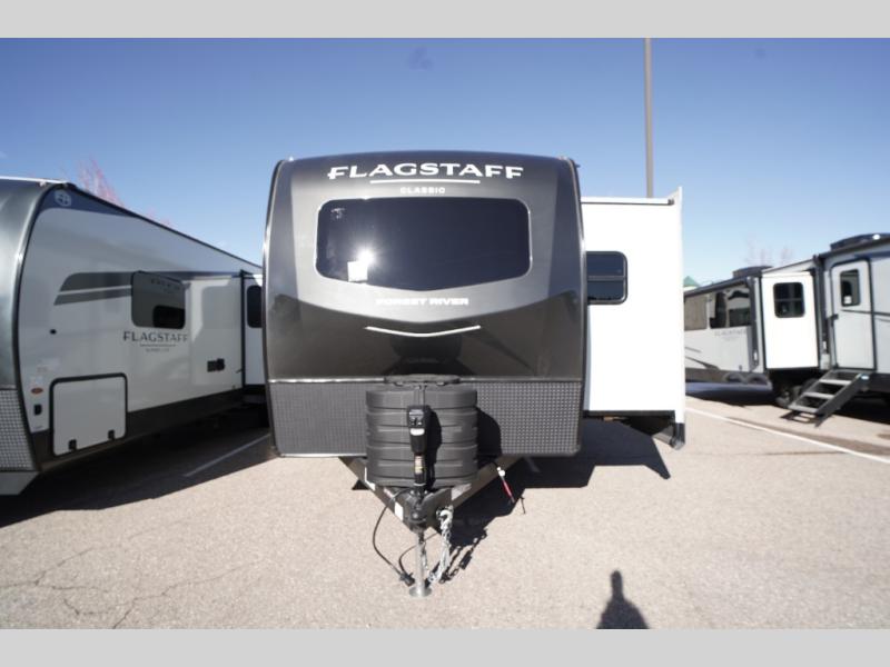 Each one of these Forest River Flagstaff Classic fifth wheels or travel trailers will be your home on wheels! Their quality craftsmanship and attention to detail shines through the enclosed underbelly, the fully laminated walkable roof, and six-sided full-aluminum frame. Towing your unit will be easy with the Goodyear Endurance tires plus RoadTech tire pressure monitoring. Additional exterior features include a 200W solar panel, slam baggage doors, a Key-Alike lock system, and double 30 lb. LP tanks to name a few conveniences. Head inside to find a residential style gas range, solid surface kitchen and bath countertops, soft close hidden cabinet hinges, and more comforts!